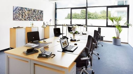 En plus d'avoir l'accès WIFI, la possibilité de réserver des salles de réunion et l'accès à des espaces communs, HQ Feringastrasse dispose ou offre :