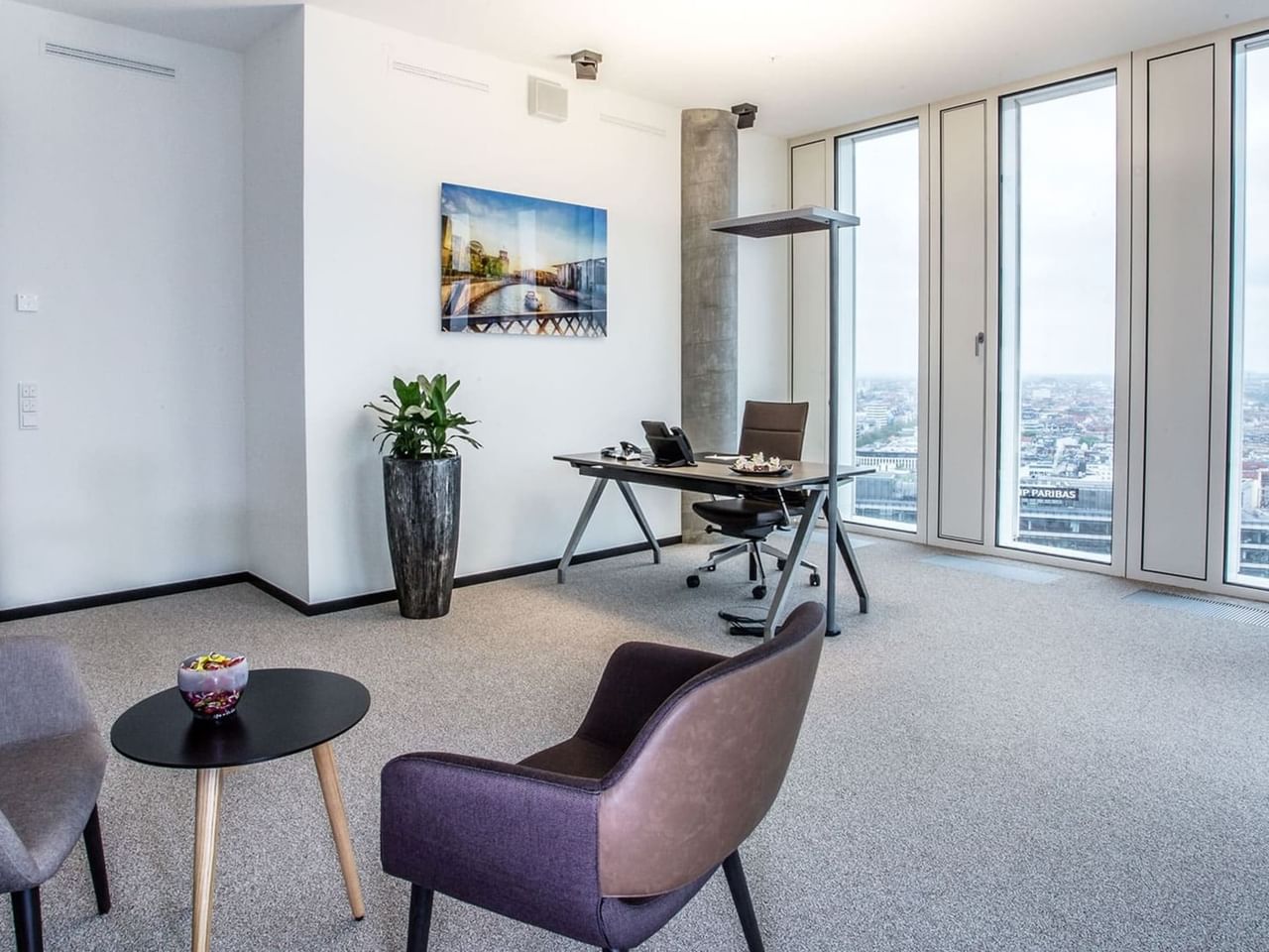 Profitez d'un lieu de travail spectaculaire - votre bureau sur les toits de Berlin. Contora Office Solutions dans l'Upper West à Berlin-Charlottenburg.