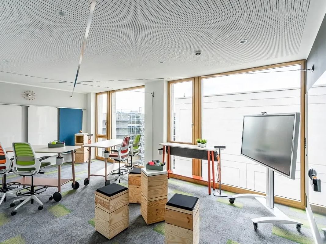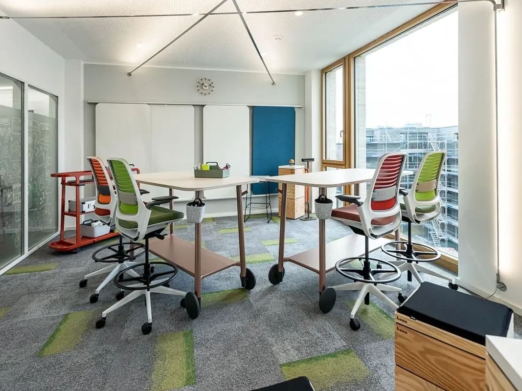 L'espace de coworking ETAGE3 est installé dans le nouveau bâtiment de la Stadtsparkasse Bocholt sur la Neutorplatz depuis avril 2021.