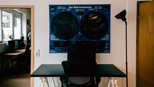 Avec des murs clairs qui contrastent avec les tables en bois brillant et des plantes qui donnent le ton, cet environnement stimulera votre productivité.