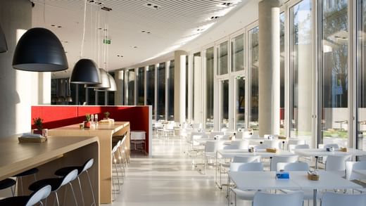 L'Oréal, IBM et McKinsey font partie de ses voisins. La Kaiserswerther Strasse 135 est l'endroit idéal pour nouer des contacts. Vous pourriez être assis juste à côté du prochain grand créateur de mode ou avocat allemand - si vous n'en êtes pas un vous-même, bien sûr...