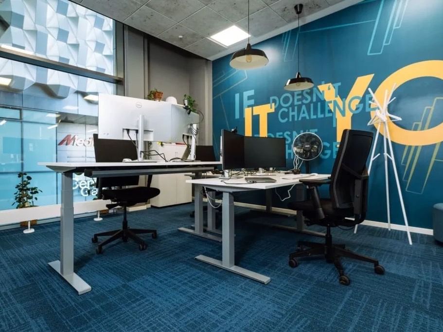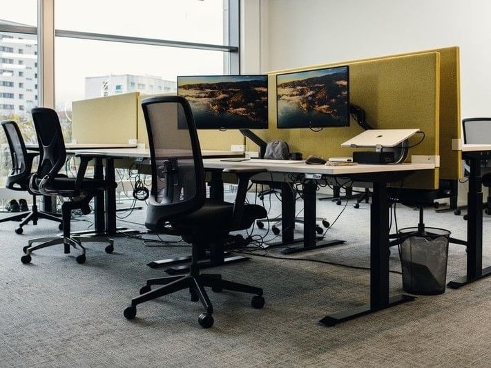 Tous les bureaux sont modernes et de haute qualité, équipés de chaises, de bureaux à réglage électrique et d'armoires de bureau. De plus, trois bureaux disposent de leur propre cabine téléphonique.