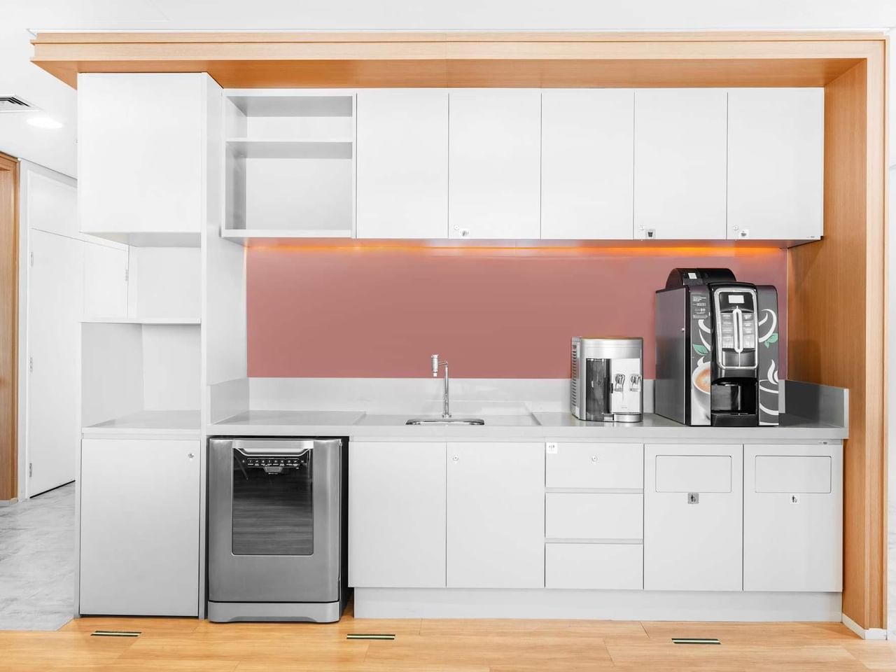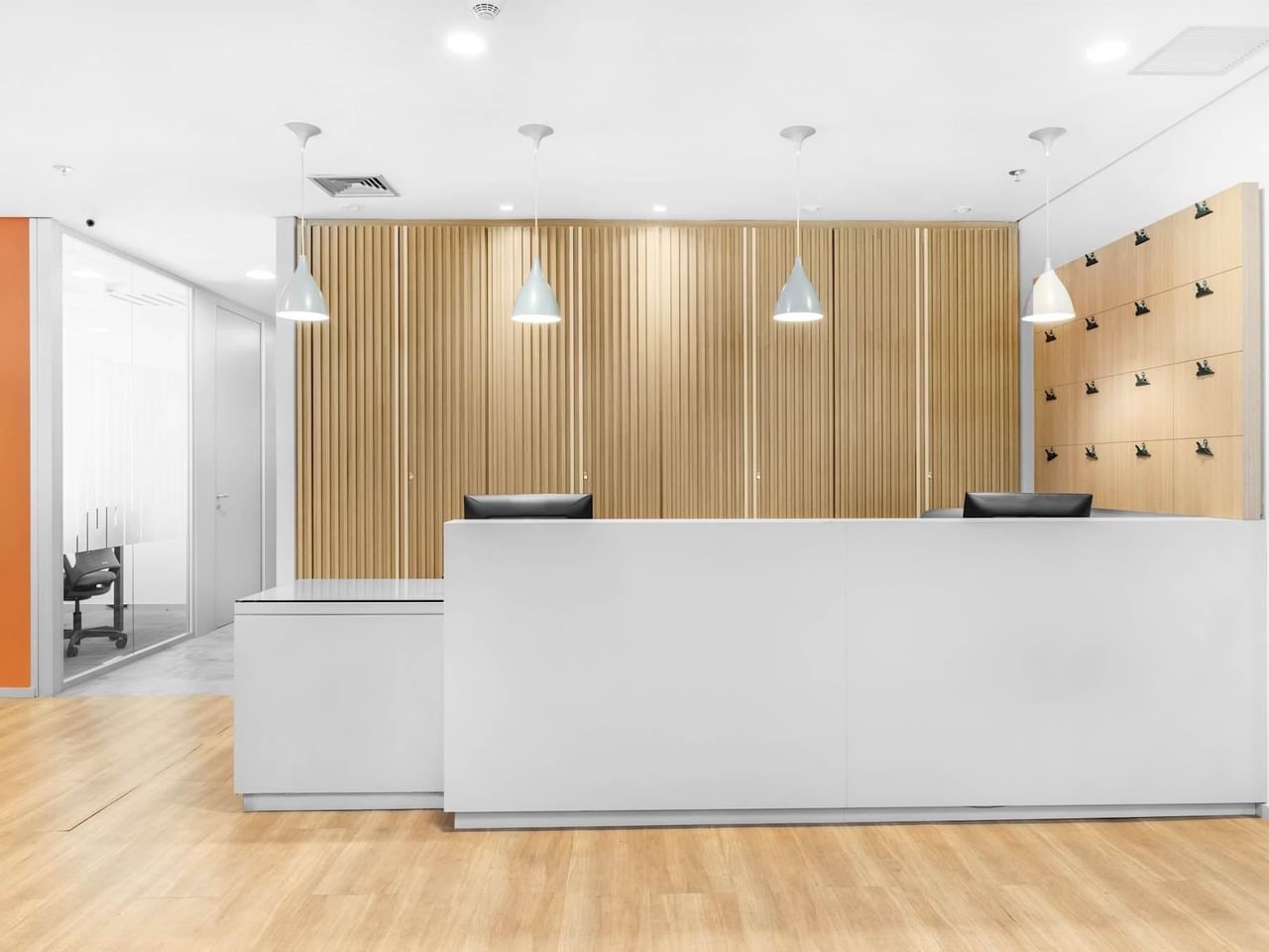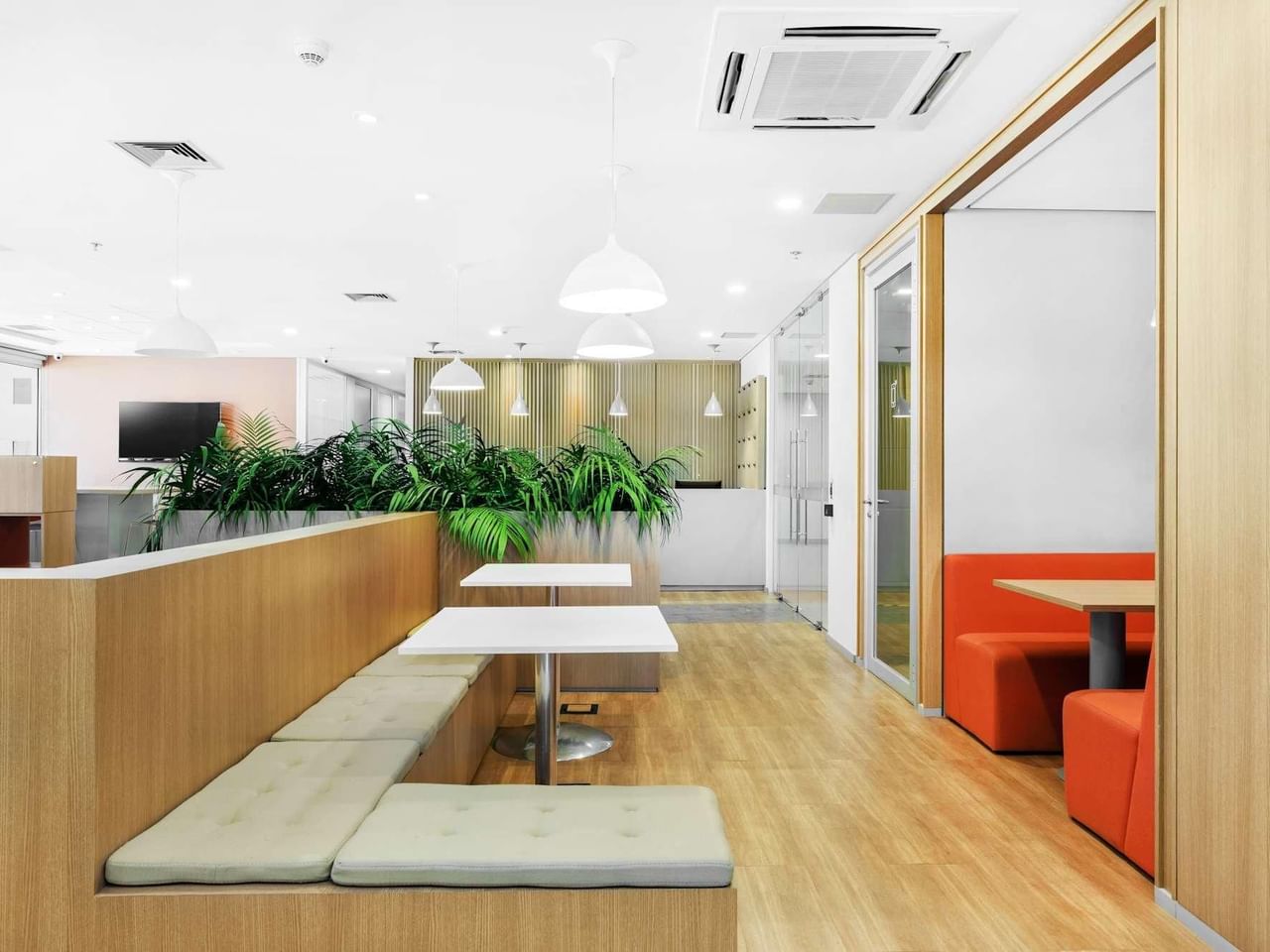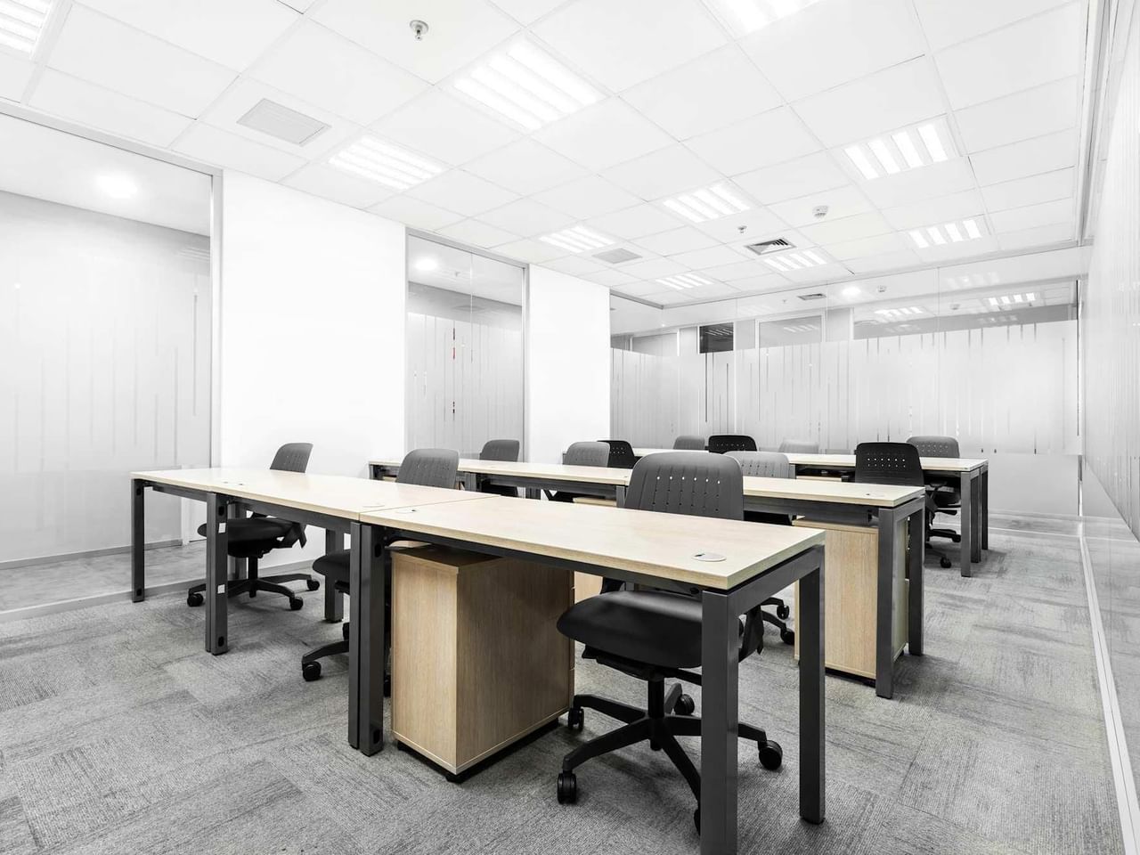 Travaillez de manière productive dans les bureaux et salles de réunion spacieux du quatrième étage, inondés de lumière par les grandes fenêtres.