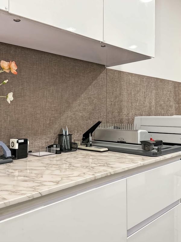 Travaillez de manière productive dans des bureaux lumineux aux couleurs éclatantes et rafraîchissez-vous dans l'élégant café-bar.