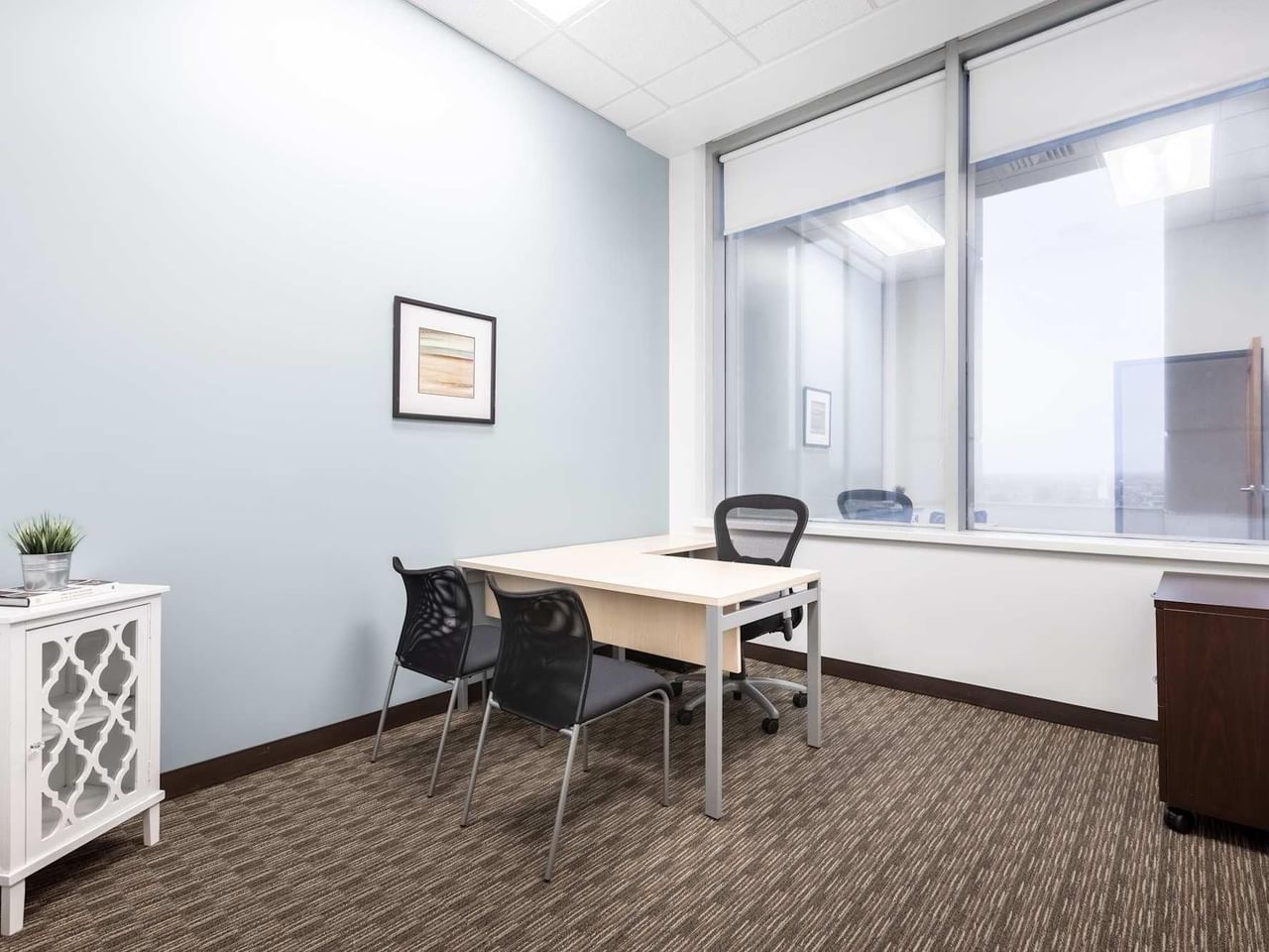 Cet espace de bureaux haut de gamme, situé au centre de la ville, est également doté d'un grand nombre d'équipements, tels qu'un café sur place, une salle de sport gratuite, un distributeur automatique de billets et des installations de nettoyage à sec.