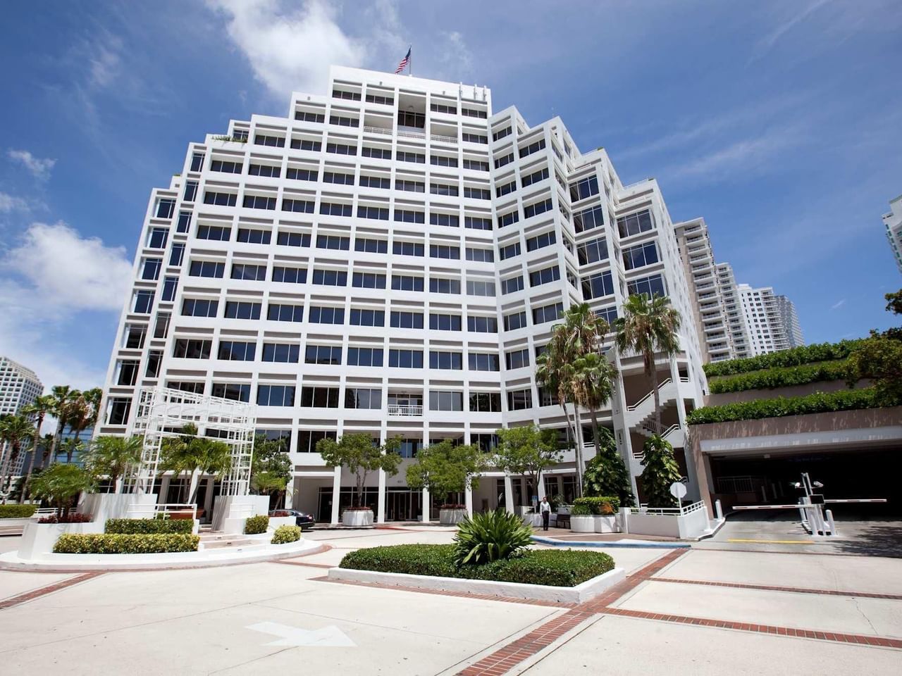 Situé sur l'île exclusive de Brickell Key, le Courvoisier Centre II se dresse fièrement au bord de l'eau et offre une vue imprenable sur le quartier des affaires de Miami, de l'autre côté de la baie.