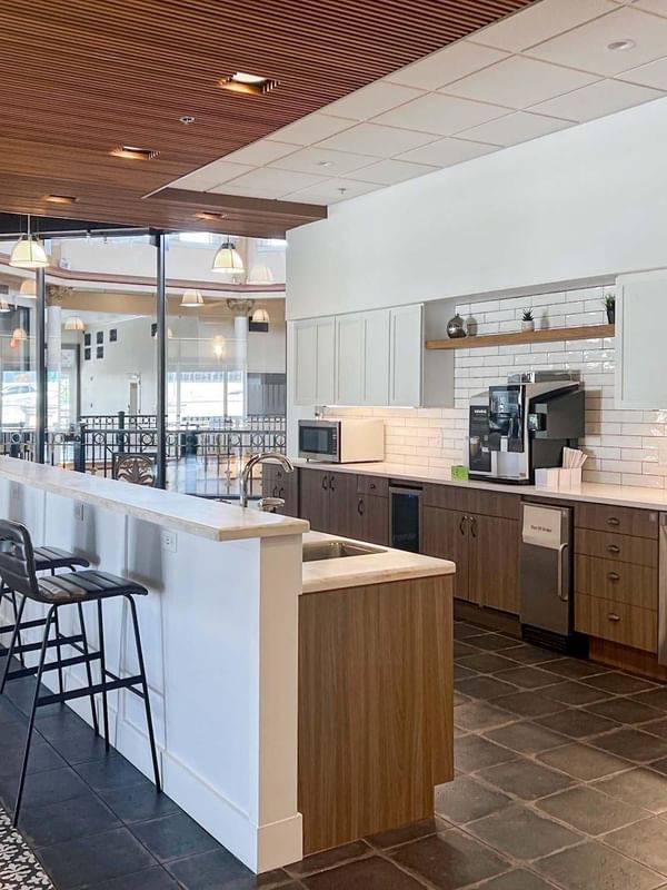 Rafraîchissez-vous avec des boissons et des en-cas provenant de notre cuisine bien approvisionnée, et retrouvez vos collègues dans notre confortable salon.