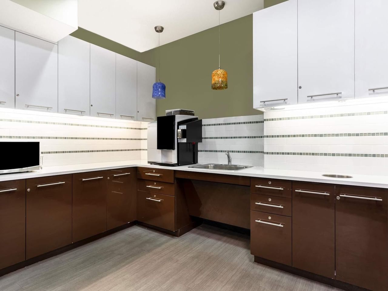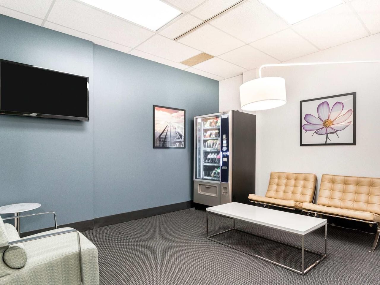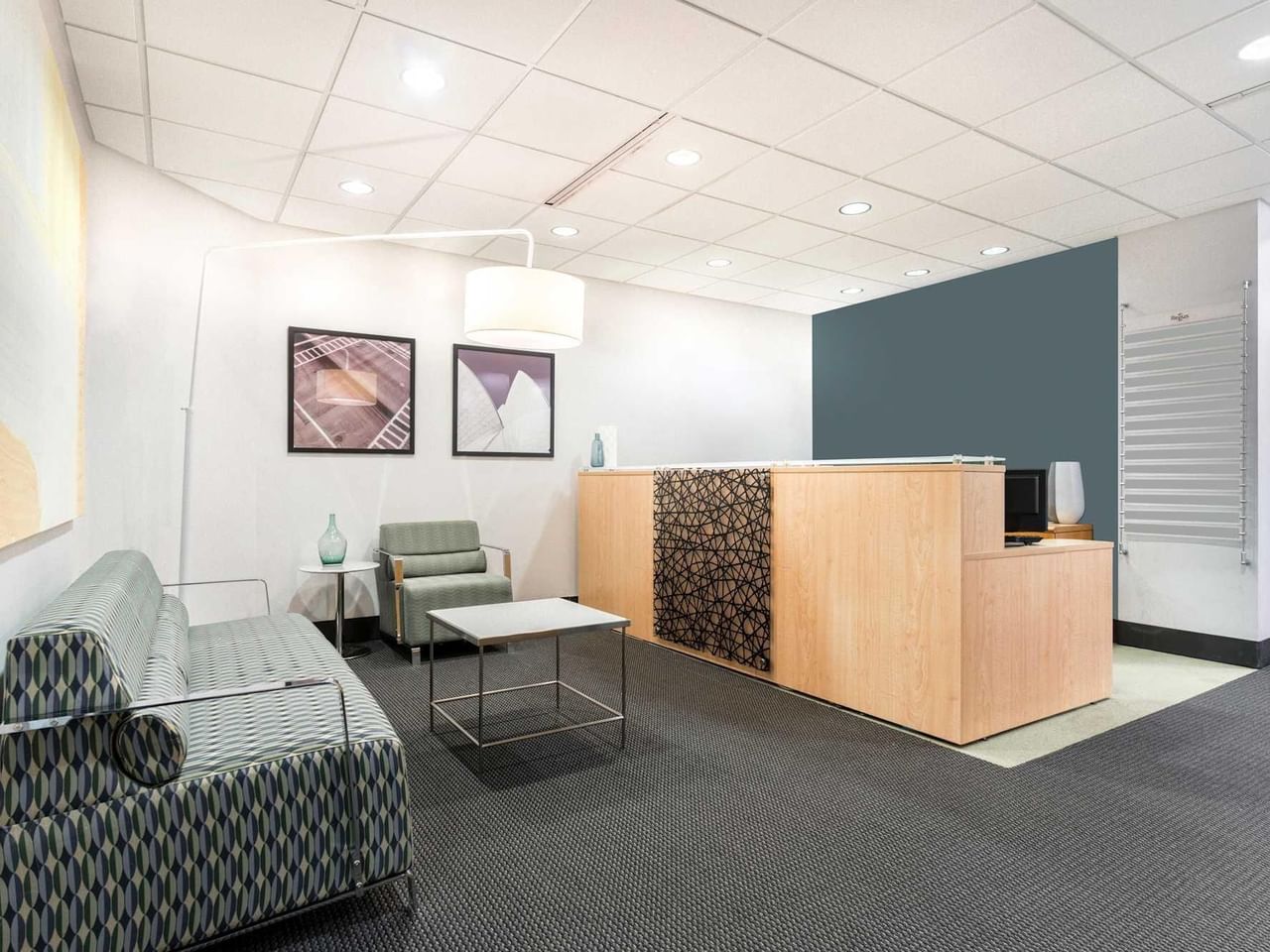 Un extérieur moderne avec de grandes parois vitrées abrite des espaces de travail flexibles où votre équipe peut utiliser un salon d'affaires et des installations pour les personnes handicapées.