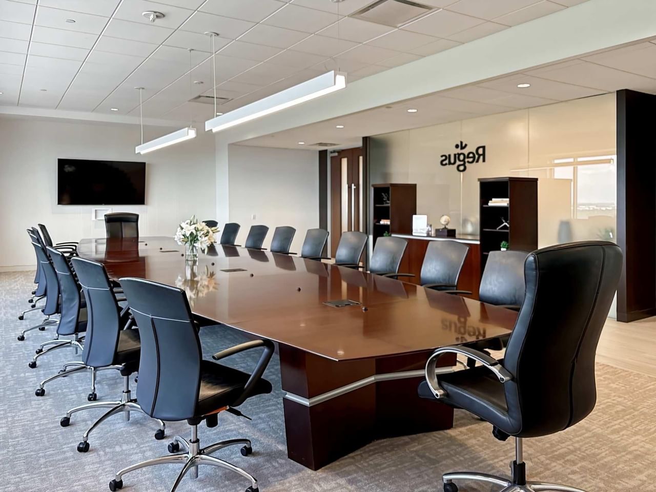 Après une journée de réseautage et d'établissement de nouveaux contacts, accueillez vos clients potentiels et admirez la vue sur le Texas depuis notre salle de conférence de taille exécutive.