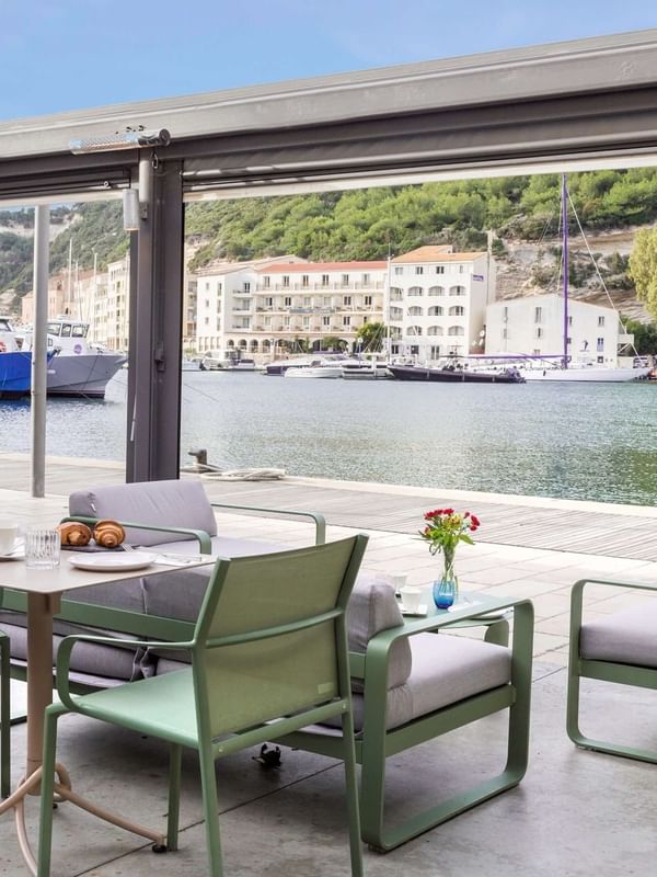 Avec une vue imprenable sur le port, profitez d’une après-midi de travail sur la terrasse ou au sein du lobby.