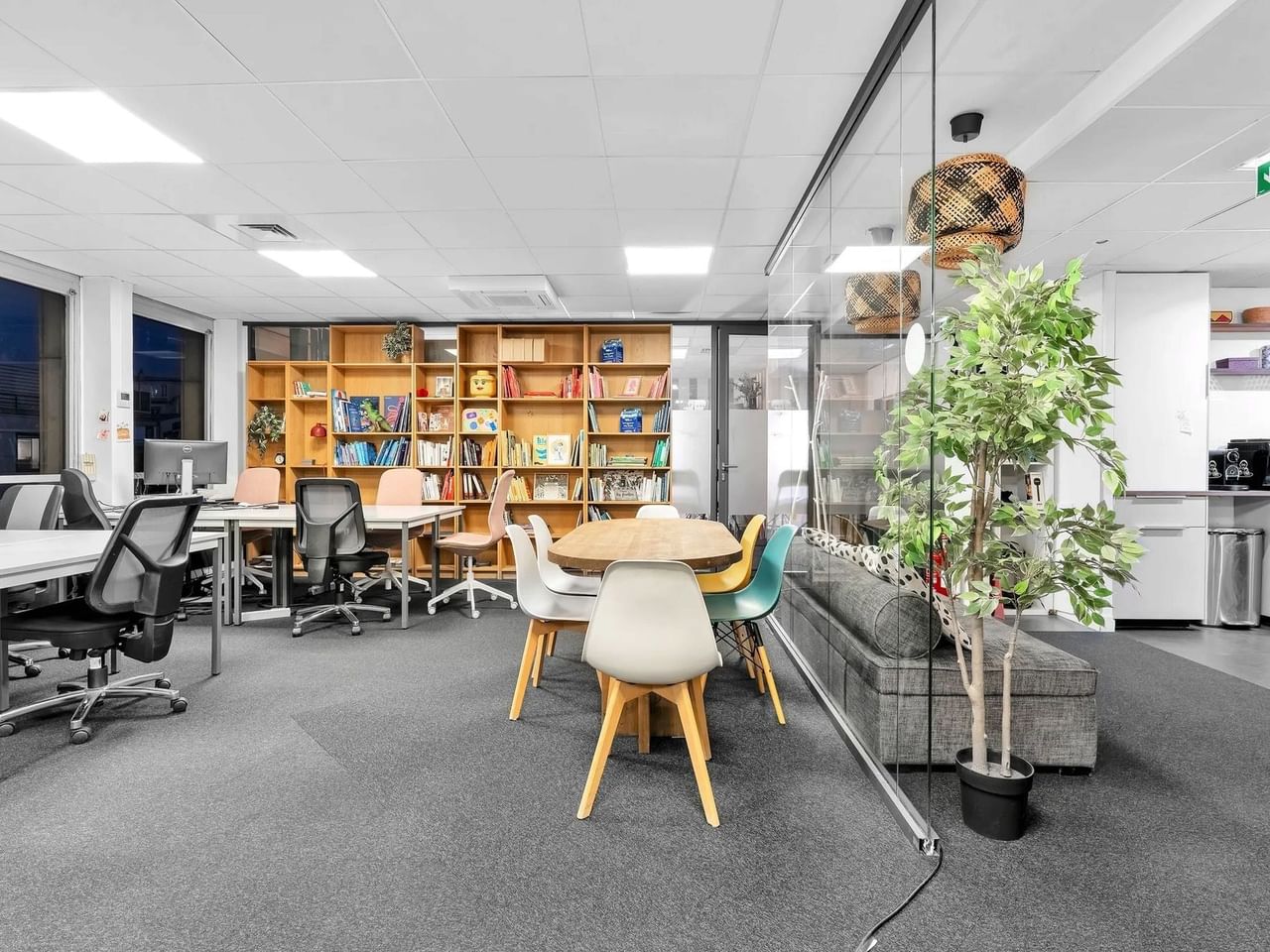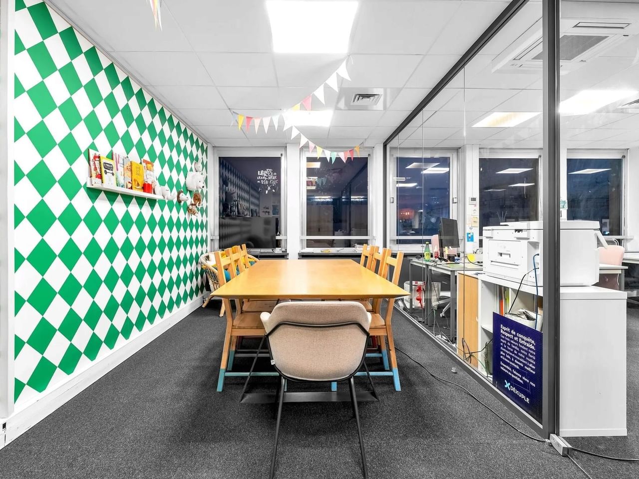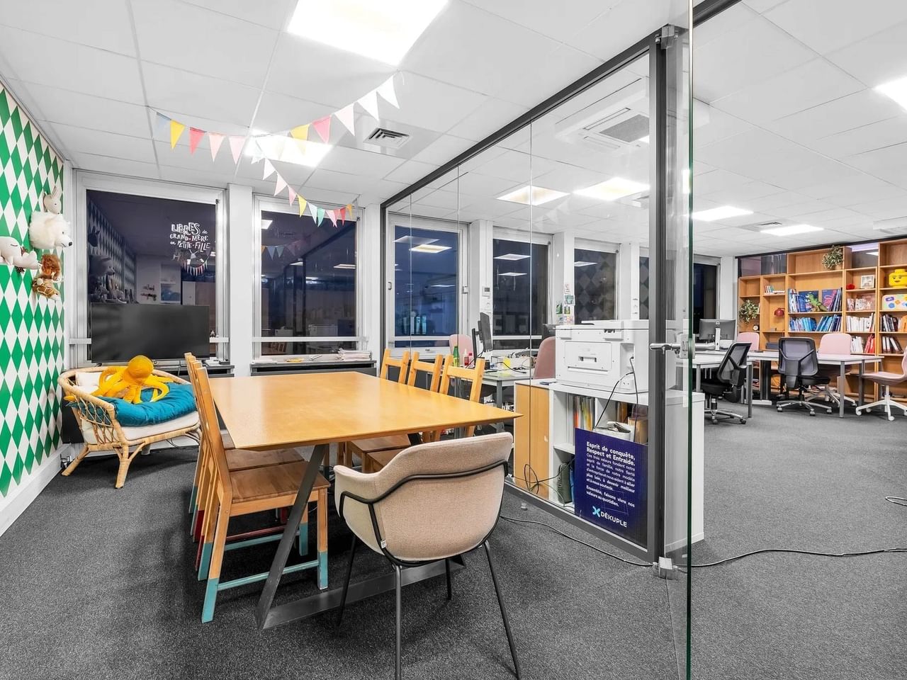 Situé à Neuilly, cet espace de 100 m² au 6ᵉ étage offre un environnement de travail complet pour 15 postes fixes, avec open space, salle de réunion et une cuisine / espace détente.