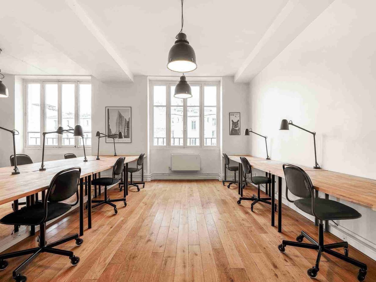 Au 3e étage, cet espace privatif de 130 m2 a été conçu pour accueillir 20 postes fixes dans un environnement lumineux et professionnel.