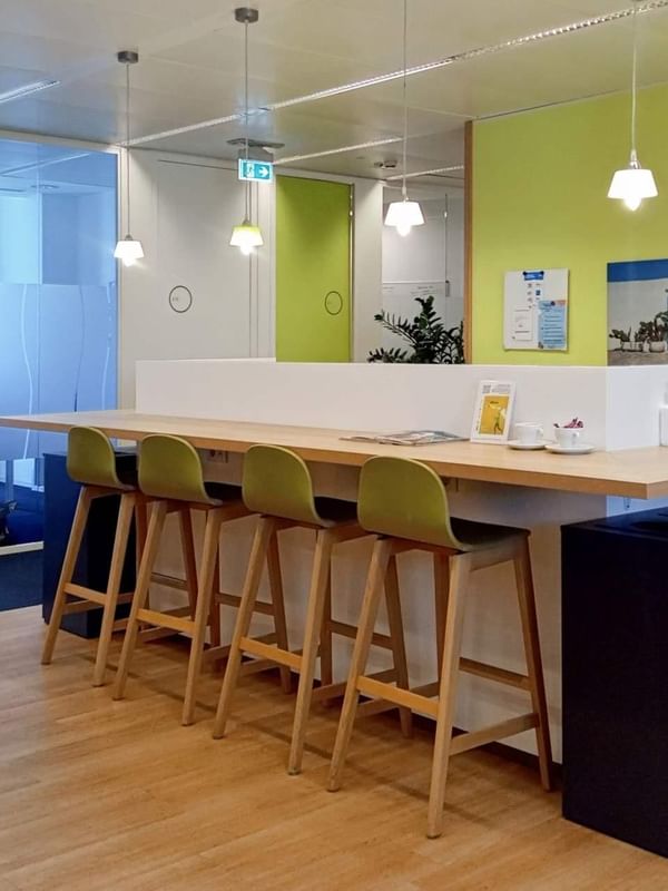 Découvrez un lieu de travail dynamique à l'intérieur de ce bâtiment unique et design, entouré d'un parc naturel idéal pour une promenade inspirante.
