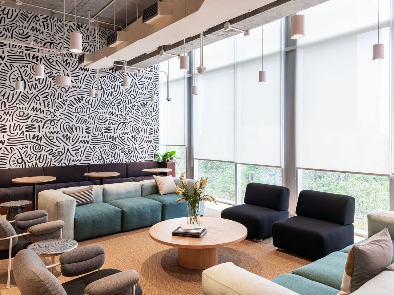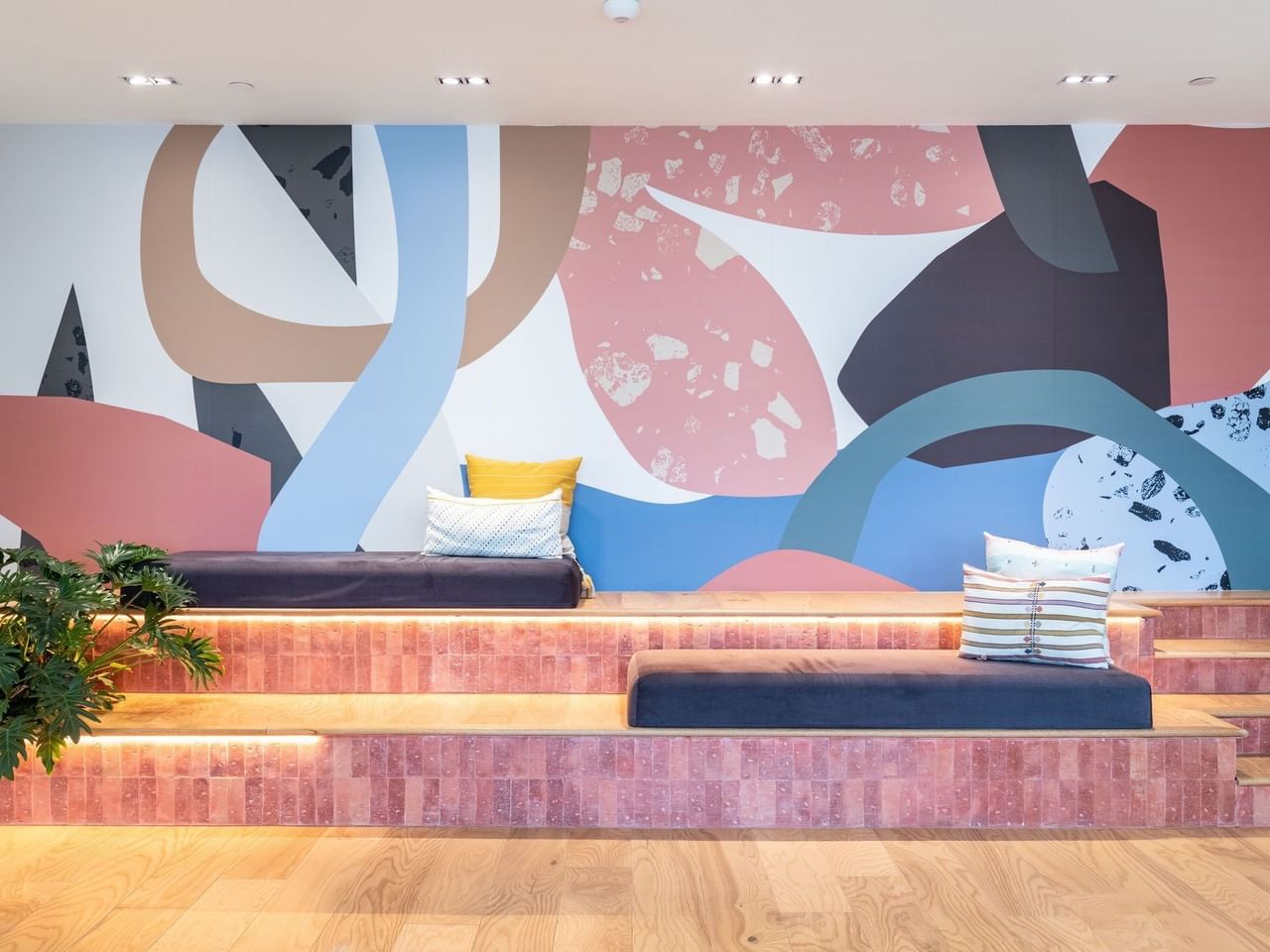 Tout espace de travail peut disposer d'un salon, mais les nôtres sont décorés de peintures murales personnalisées.