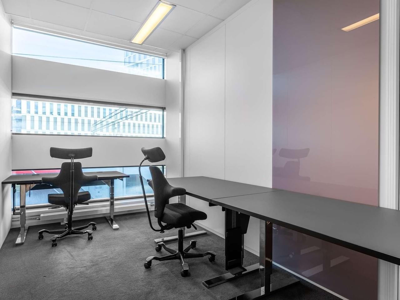 Trouvez votre place idéale dans les espaces de travail modernes et lumineux du troisième étage d'un immeuble en verre et bénéficiez d'un grand parking.
