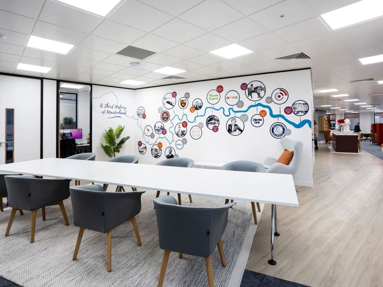 Le bureau se trouve à trois minutes à pied de la gare de Maidenhead, qui offre à nos résidents un accès direct à Londres et à Reading, ainsi qu'un accès routier très pratique à la M4 et à l'aéroport d'Heathrow (à seulement 1,5 km). (à seulement 1,5 miles).