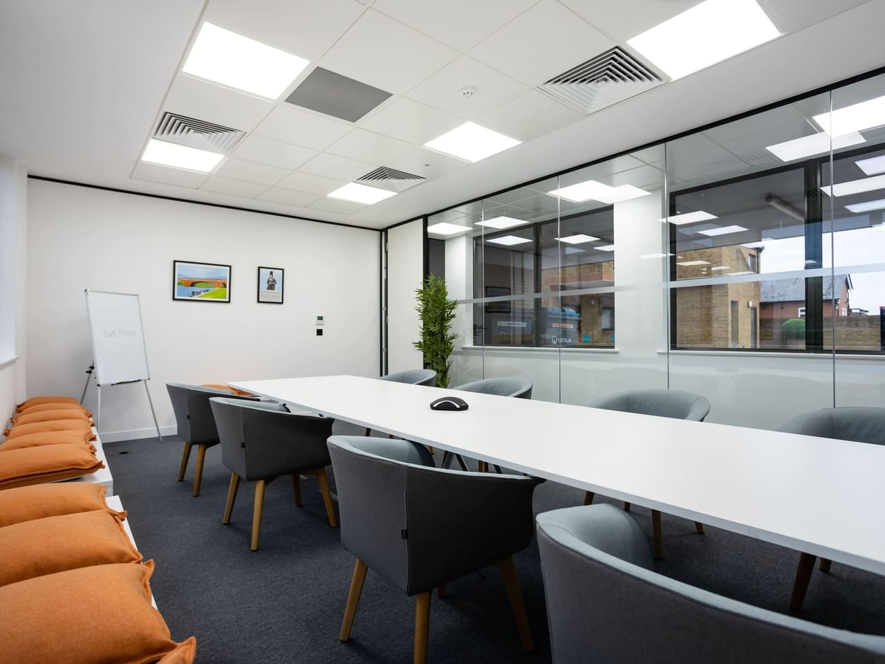 York House dispose au rez-de-chaussée d'un espace partagé et collaboratif de 3 500 pieds carrés, comprenant une salle de réunion hi-tech (capacité de 20 personnes) et un espace événementiel séparé (capacité de 30 personnes), ainsi que de deux étages de bureaux privés.