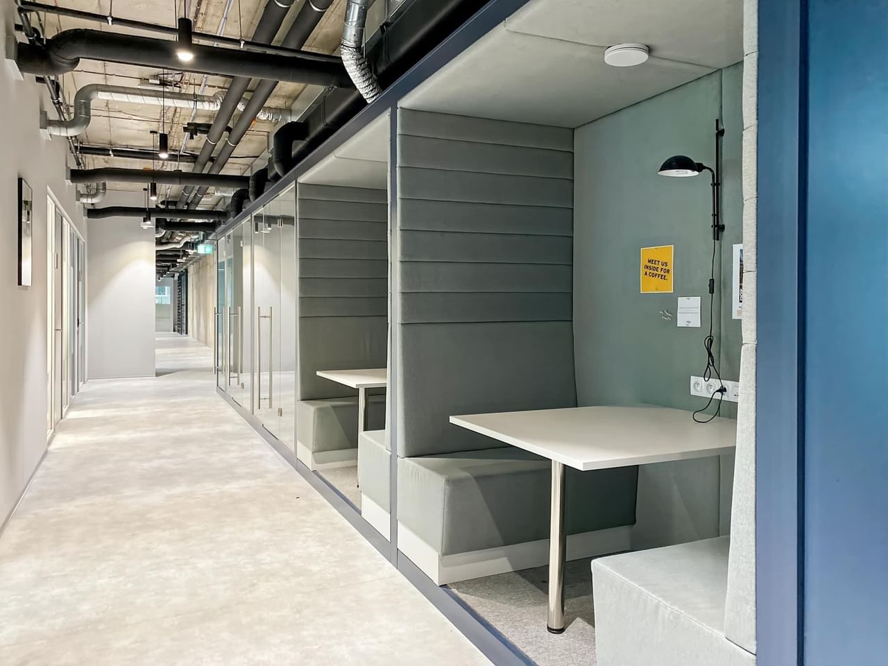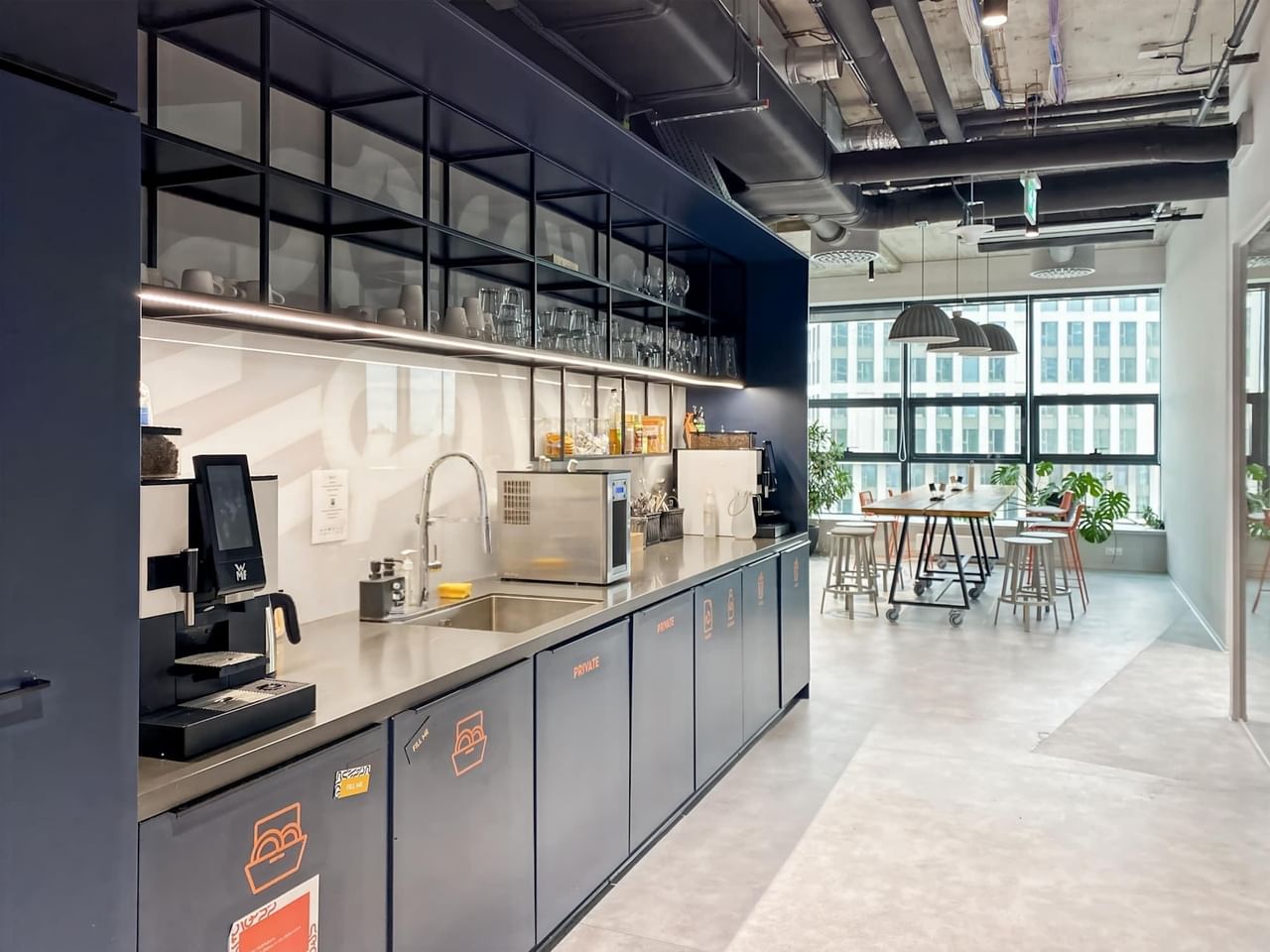 Entrez dans nos bureaux modernes, équipés d'une connexion WiFi de haute qualité et de cuisines communes entièrement approvisionnées.