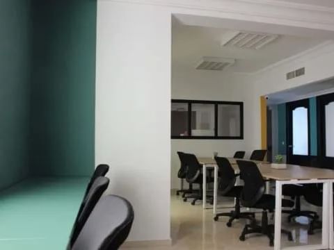 Votre coworking space, situé au Lac de Tunis, est composé de bureaux privatifs et privés parfaitement meublés, d'un espace de travail partagé et d'une salle de réunion toute équipée.