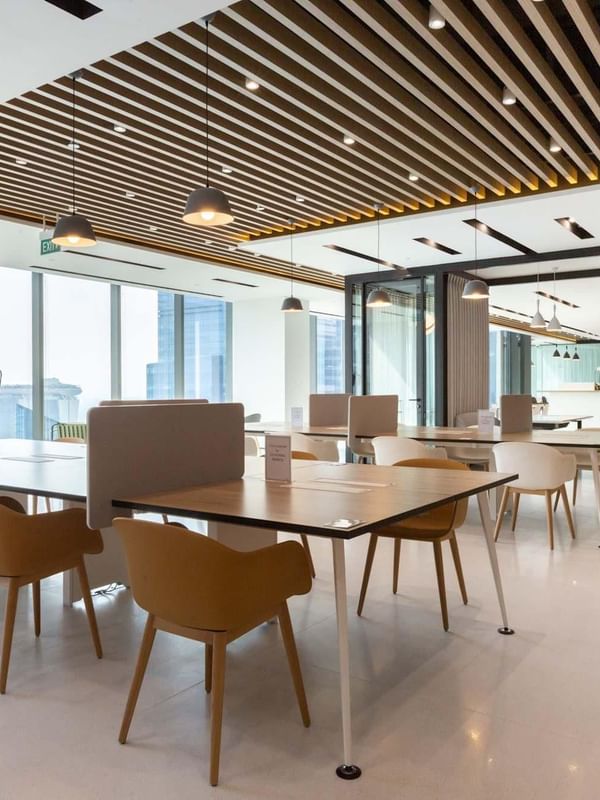 Verwirklichen Sie Ihre Ideen in Designer-Arbeitsbereichen und kreativen Konferenzräumen und verlassen Sie sich dabei auf superschnelles WiFi.