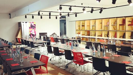 Moderne Meetingräume für bis zu 12 Personen stehen ebenfalls zur Verfügung, mit WLAN, abschließbarem Sideboard und Whiteboard. Stellplätze sind auf Anfrage buchbar.