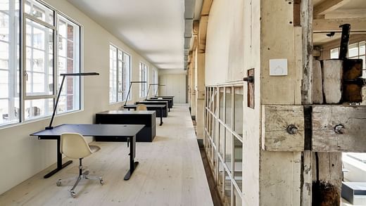 Hohe Decken, stilvolle Kunstwerke und eine sonnige Dachterrasse - das sind die Highlights unseres 160qm großen Office Space.