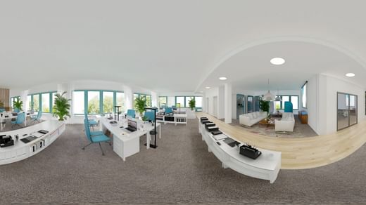 Wie in einer Wohngemeinschaft wollen wir Mietern ihre eigenen in sich abgeschlossenen Büros bieten mit dem Mehrwert einer gemeinschaftlich genutzten Fläche, wie Konferenzraum, Kaffeeküche und Lounge.