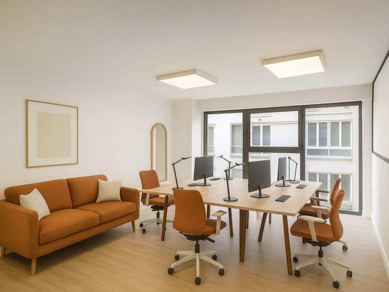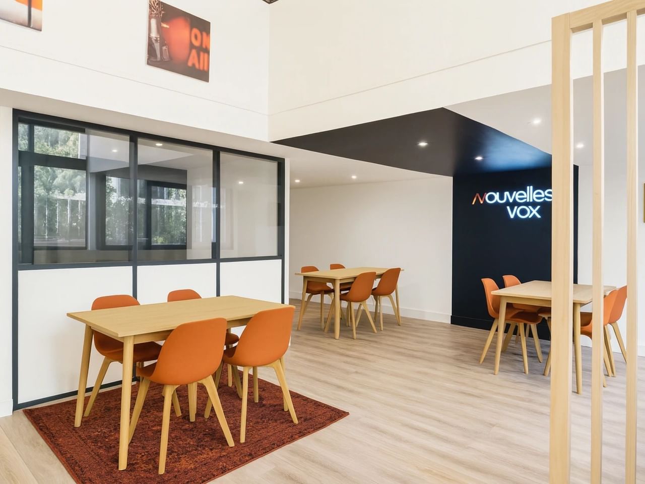 Dieser rund um die Uhr geöffnete und dank seiner großen Erkerfenster lichtdurchflutete Raum im Erdgeschoss mit Blick auf den Innenhof ist ideal für Kaffee/Mittagessen oder einfach zum Brainstorming.