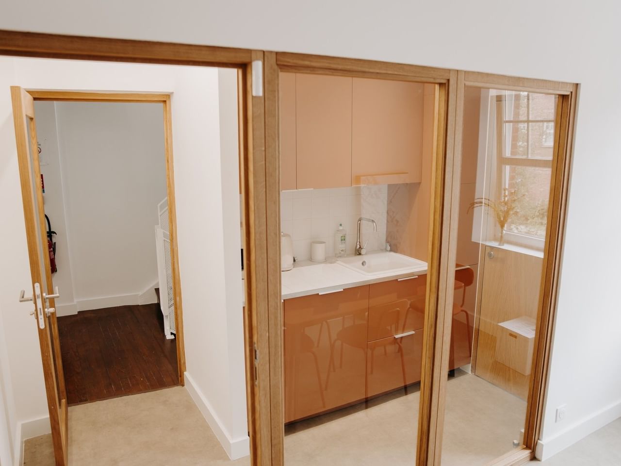 150 m2 komplett renoviert, um zu arbeiten, sich auszutauschen und die Öffentlichkeit zu empfangen: Tagungsräume, Schulungszentrum, eigenes Büro im Coworking Space, Küchenbereich.