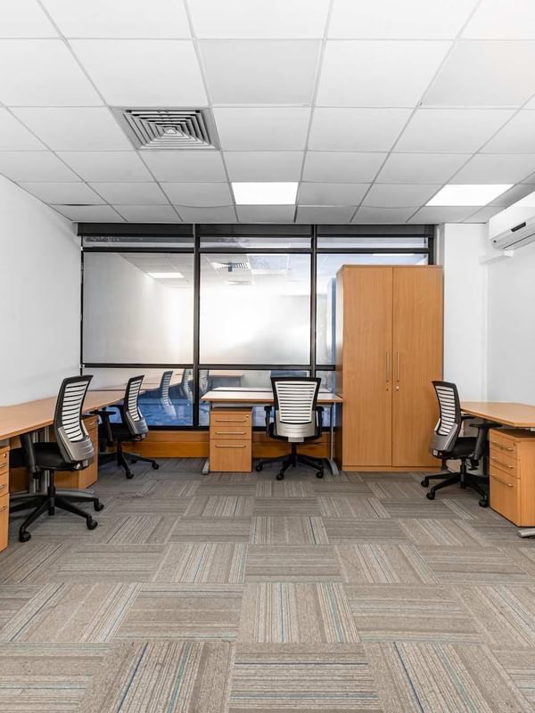 Das beliebte Mid Town Plaza ist ein anspruchsvoller Arbeitsbereich im ersten Stock in der Nähe der malerischen Gärten des Vengal Rao Parks.
