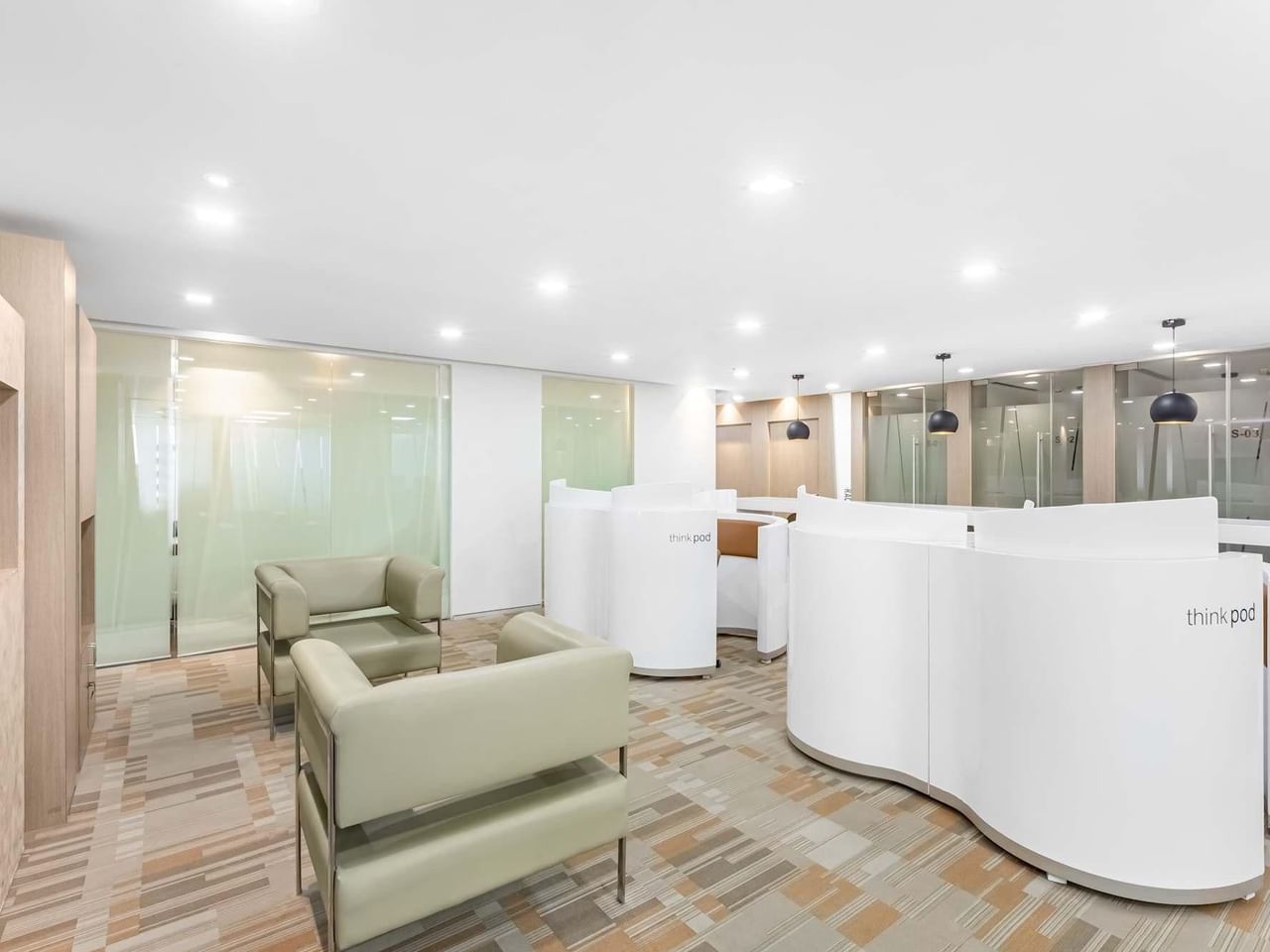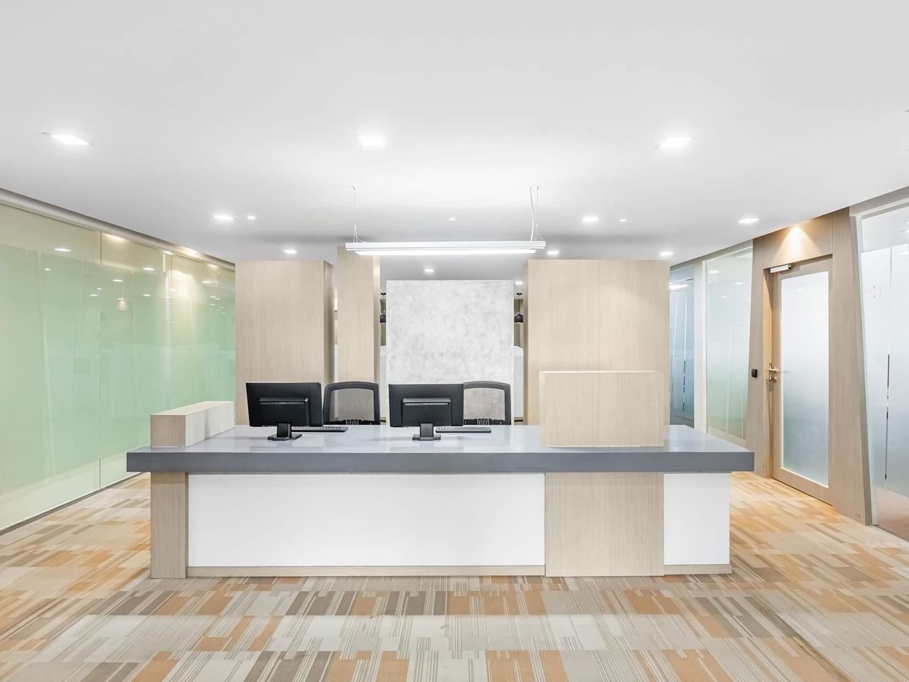 Arbeiten Sie bequem in diesem modernen Bürogebäude mit Glasfassade und profitieren Sie von den zahlreichen Annehmlichkeiten, die es hier gibt, wie z. B. eine Café-Bar und eine Business-Lounge.