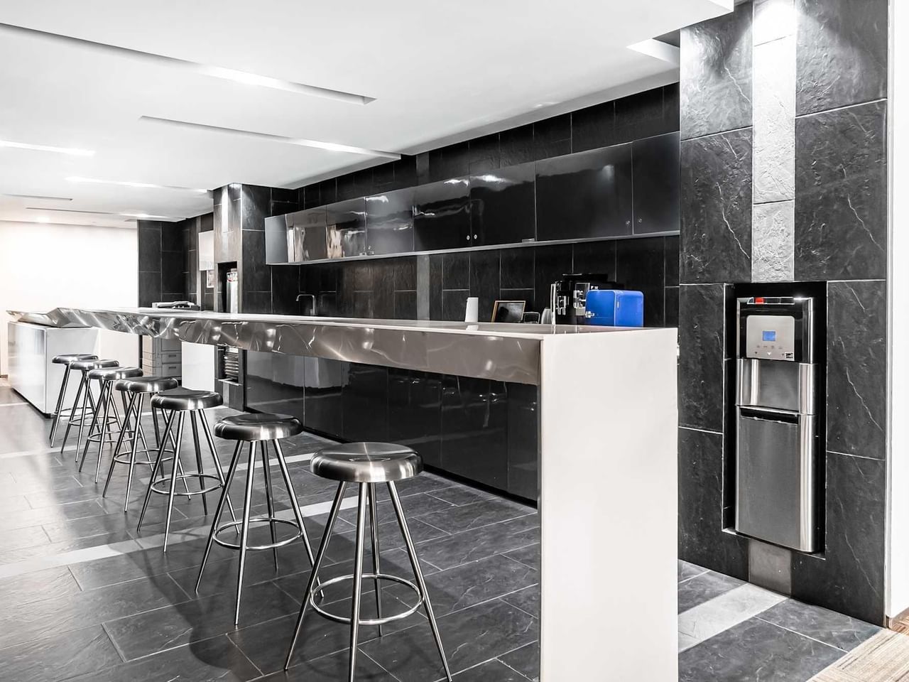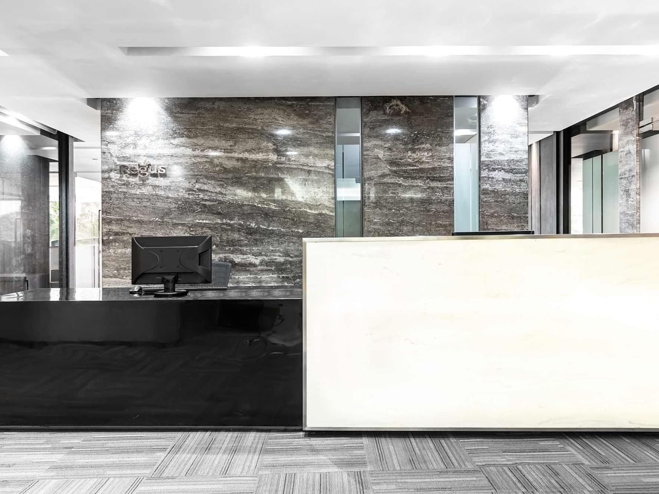 Das World Trade Centre 5 Jakarta bietet Ihnen die Vorteile eines modernen, gehobenen Arbeitsplatzes mit dunklem, zeitgenössischem Mobiliar, Steinwänden und viel natürlichem Licht.