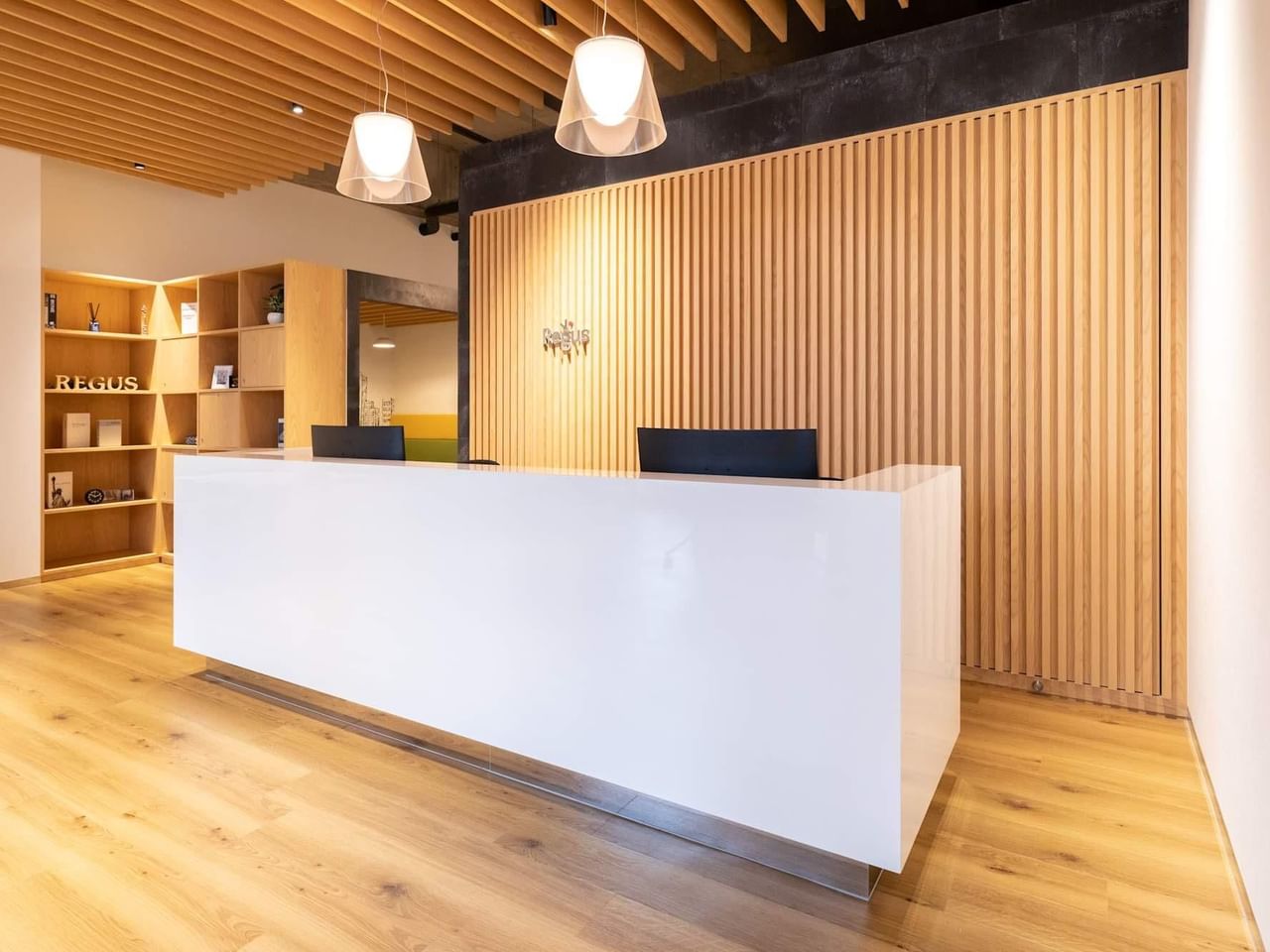 Die einzigartige Architektur, die helle Eingangslobby, die farbenfrohen Arbeitsbereiche und die Außenterrasse werden Ihren Kunden einen unvergesslichen Besuch bereiten.