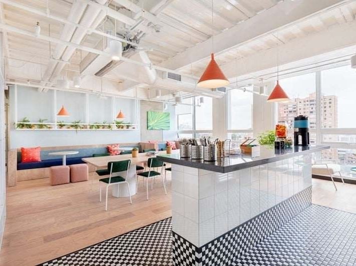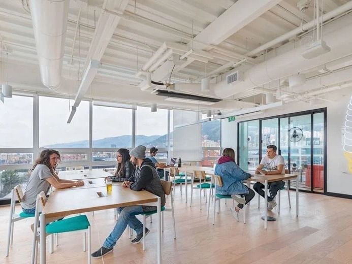 Wenn Sie bereit sind, Ihr Unternehmen in diesem kultigen Unterhaltungs- und Geschäftszentrum auszubauen, kommen Sie noch heute zu WeWork in der Carrera 12a #78-40.