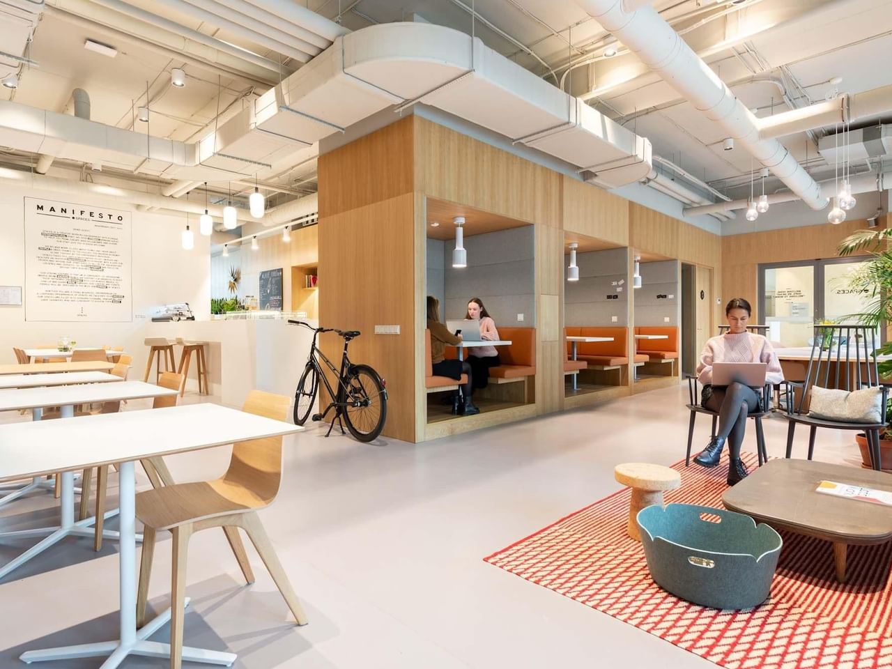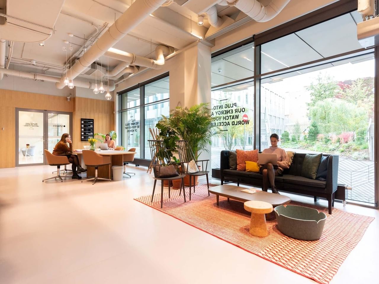 Arbeiten Sie produktiv in einem modernen, stilvollen Arbeitsbereich, der durch die bodentiefen Fenster von natürlichem Licht durchflutet wird.