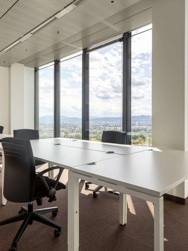 Genießen Sie von unserem Twin Towers-Arbeitsbereich aus einen atemberaubenden Blick über die österreichische Hauptstadt.