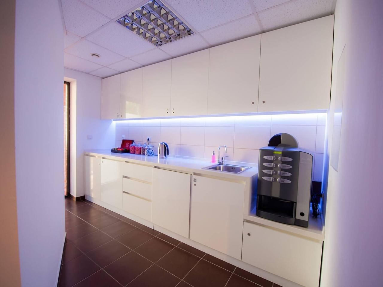 Nutzen Sie unsere voll ausgestatteten Küchen, die sich perfekt für ein Mittagessen oder ein zwangloses Gespräch mit Kollegen eignen.