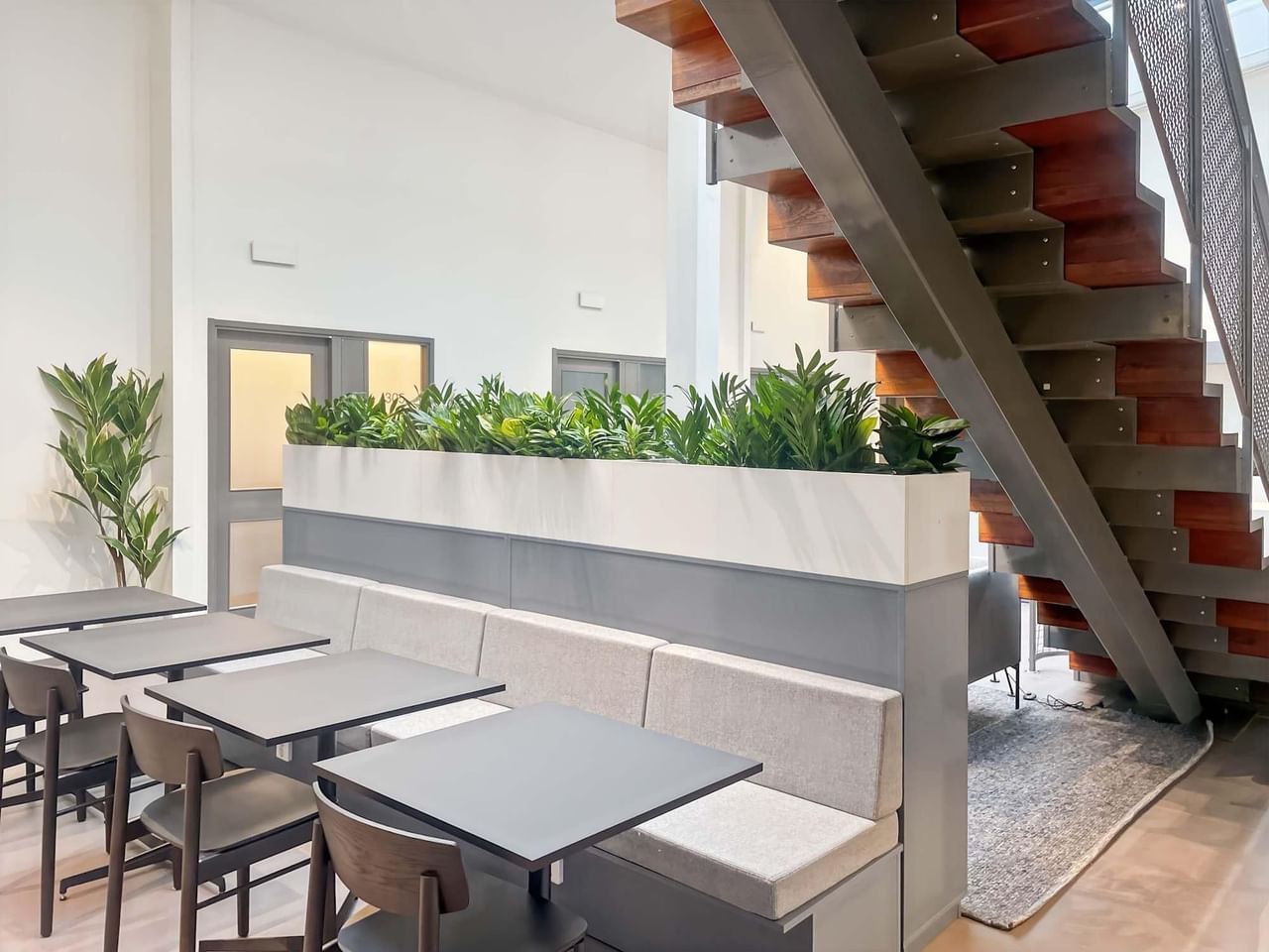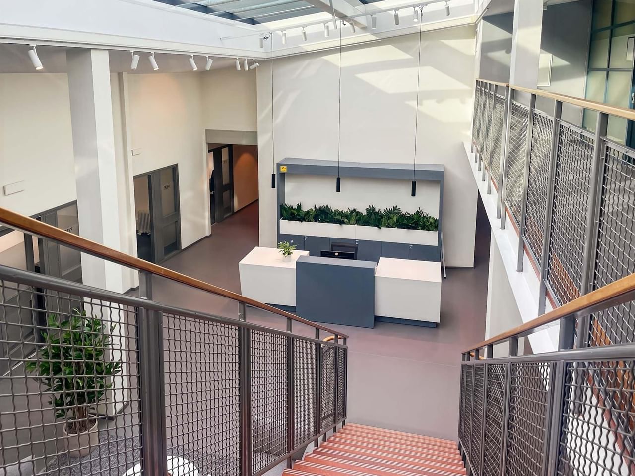 Richten Sie sich in einer professionellen Arbeitsumgebung ein, die mit privaten Büros, dynamischen Arbeitsbereichen und professionellen Besprechungsräumen ausgestattet ist.