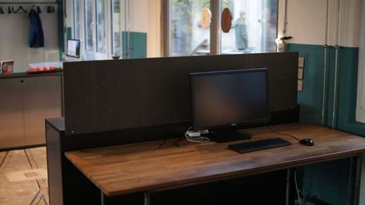 Für stressfreie Telefongespräche oder Online-Sitzungen steht zudem eine Mute Lab zur Verfügung. Auch die Reinigung und Abfallentsorgung haben wir für Sie schon organisiert.