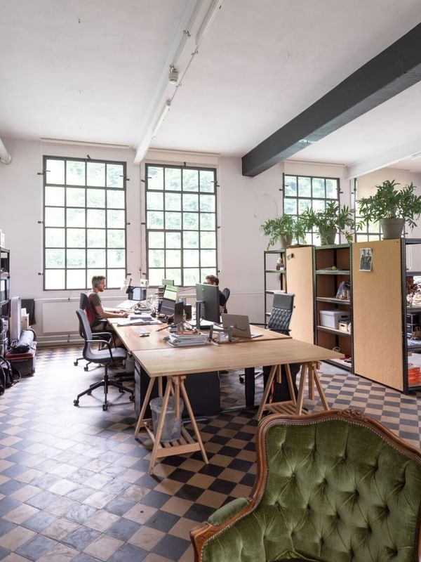 kreativer Umgebung? Wir haben Arbeitsplätze mit Tisch zur Dauermiete oder Tagesmiete zur Verfügung. Auch Monitore können nach Absprache benutzt werden.