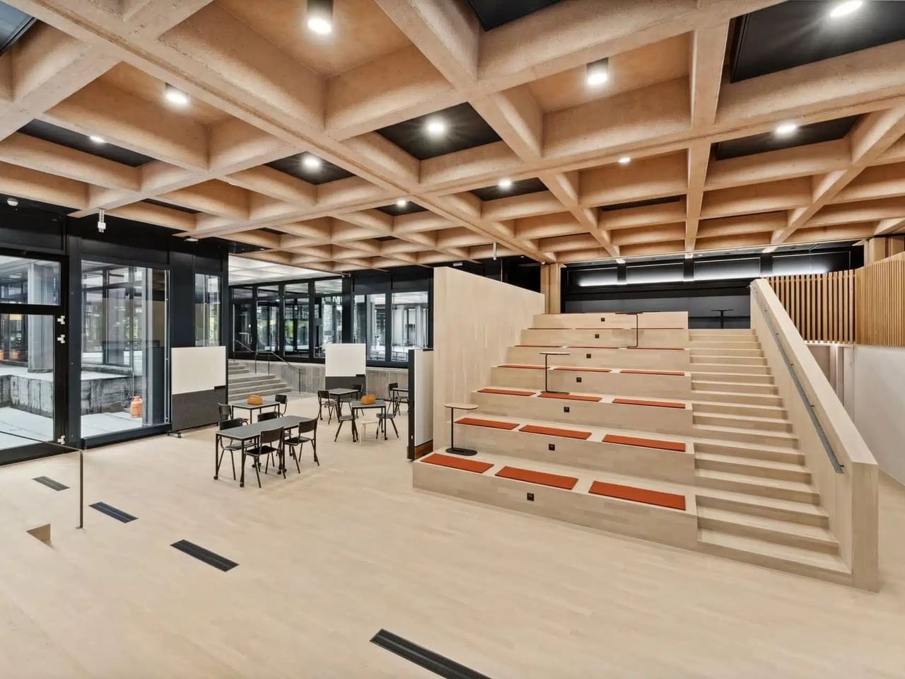 Das Café 5, eine Terrasse im Freien und das Auditorium für grosse Veranstaltungen machen Bern Murifeld zum perfekten Standort für dein Unternehmen.