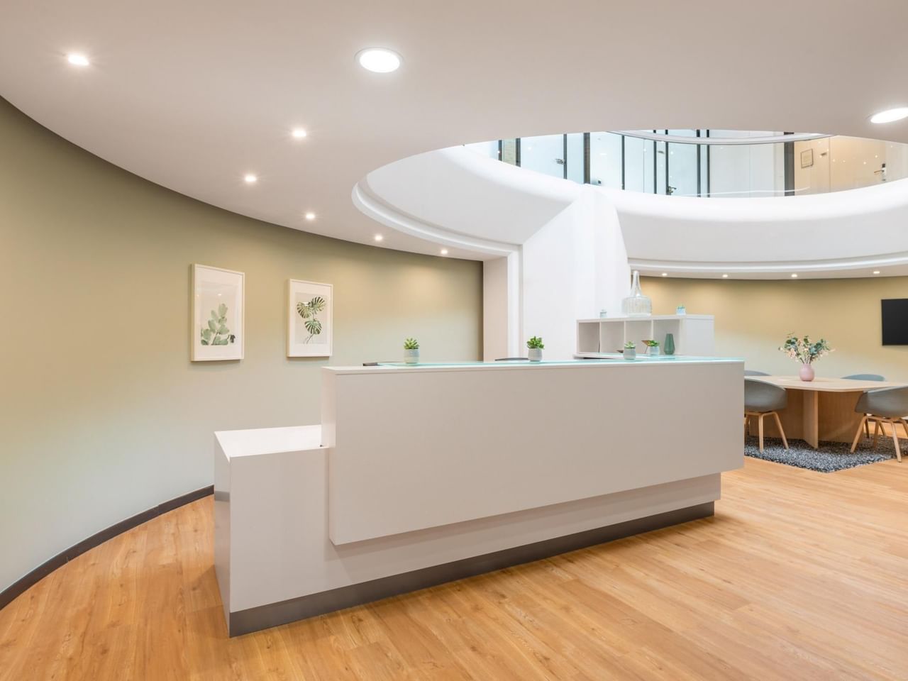 Arbeiten Sie produktiv in gepflegt ausgestatteten Räumlichkeiten mit viel Sonnenlicht dank der bodentiefen Fenster.