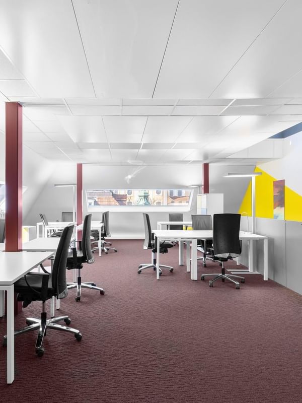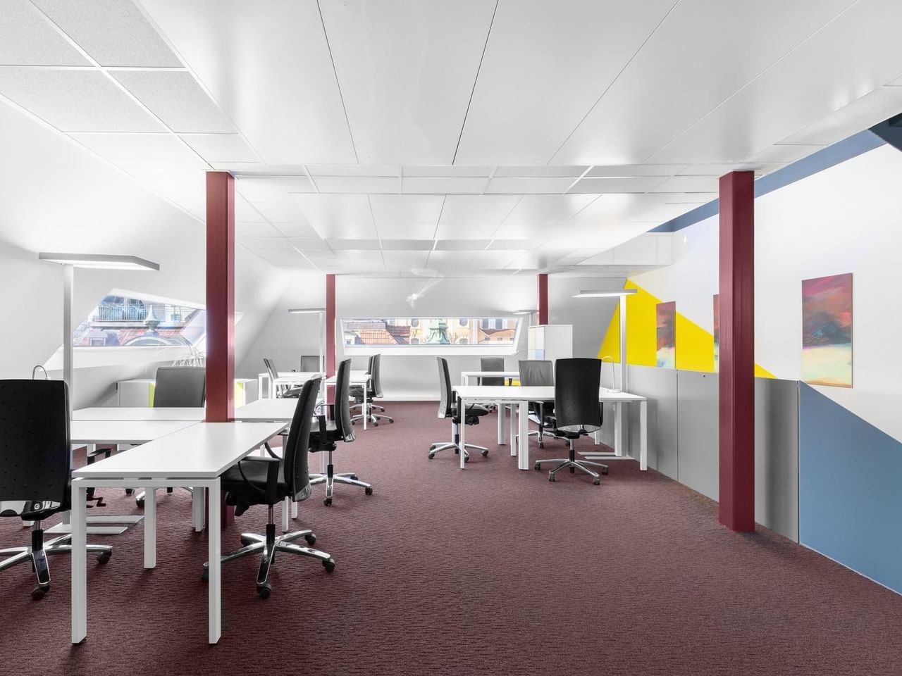 Die Kunstwerke, die Ihre hellen und luftigen Räumlichkeiten zieren, fördern kreatives Denken, während die hohen Fenster reichlich Sonnenlicht hereinlassen und eine wunderschöne Aussicht über die Stadt bieten.