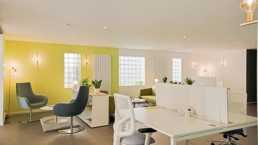 Ob Sie in Ruhe effizient arbeiten, Ihren Rücken mit unseren ergonomischen Stühlen entlasten, eine Videokonferenz in unseren Kabinen abhalten oder sich mit Ihren Kunden treffen möchten, wir bieten Ihnen eine Vielzahl von hellen und farbenfrohen Räumen.