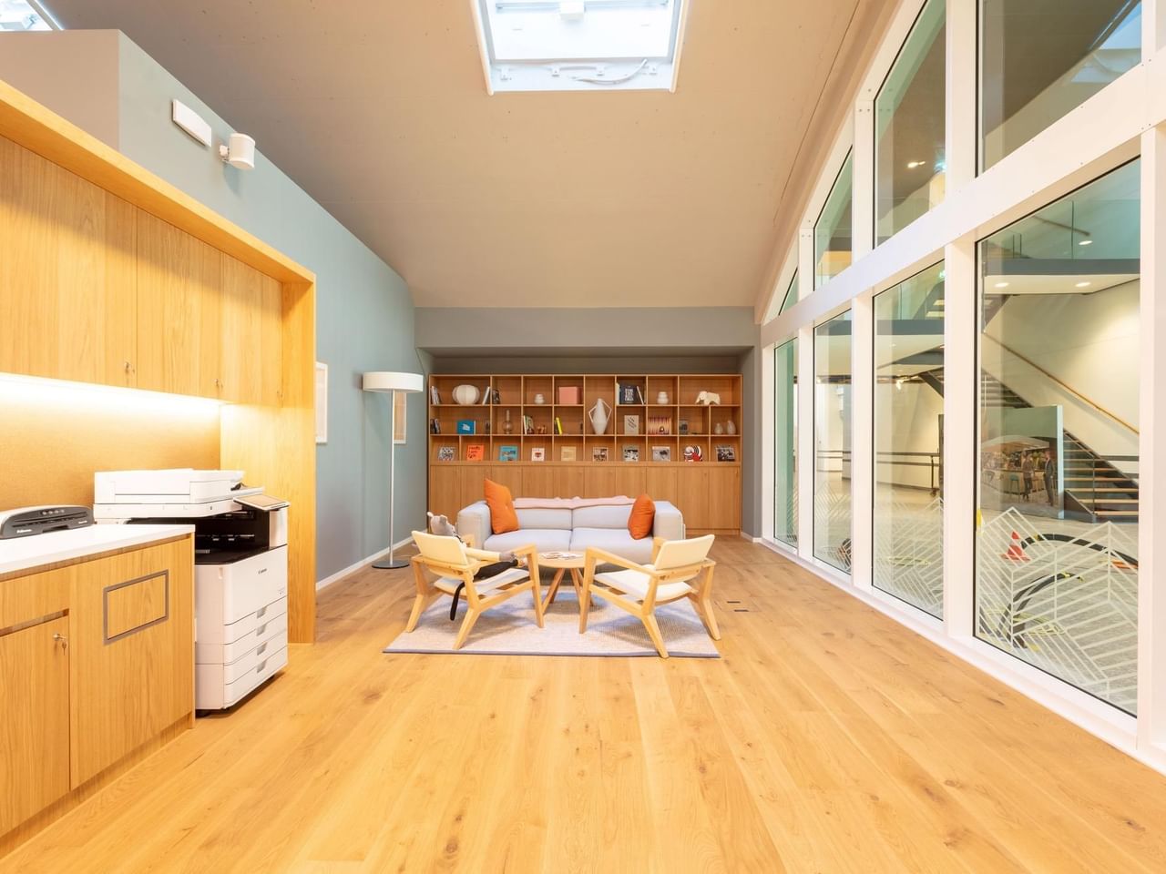 Das lebhaft und modern gestaltete Innere sorgt automatisch für Produktivität. Internationale Gäste gelangen einfach vom nahegelegenen Flughafen zu deinen Meetings im voll ausgestatteten Konferenzraum.