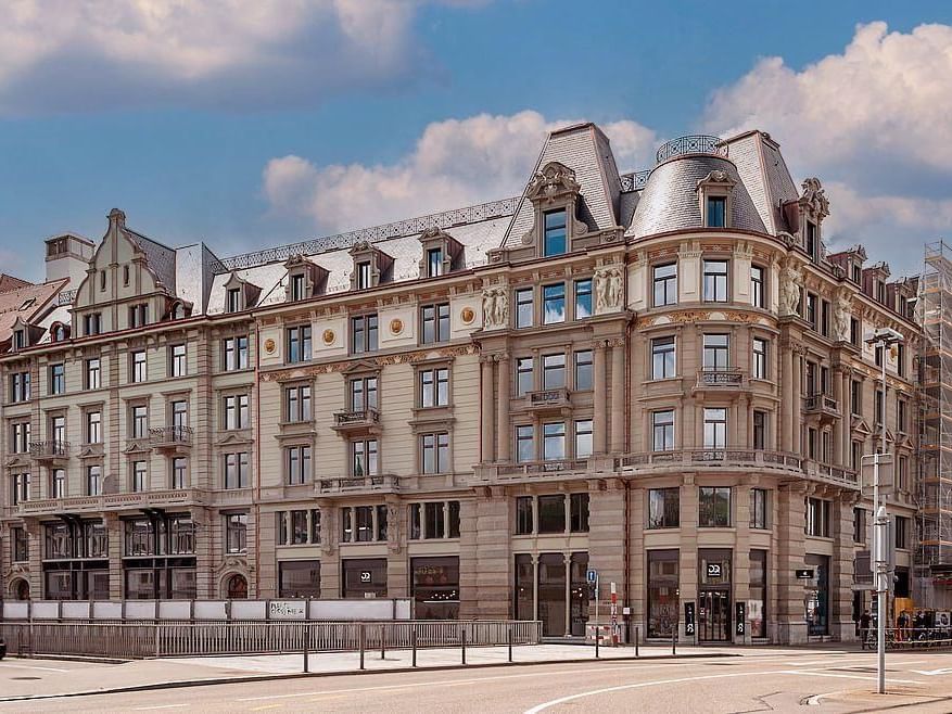 Jahrhundert im Züricher Geschäftsviertel Kreis 1. Die hervorragende Lage ermöglicht es Geschäftsgästen, ihre Büros mühelos zu erreichen, da der Bahnhof und Bushaltestellen direkt gegenüber liegen.