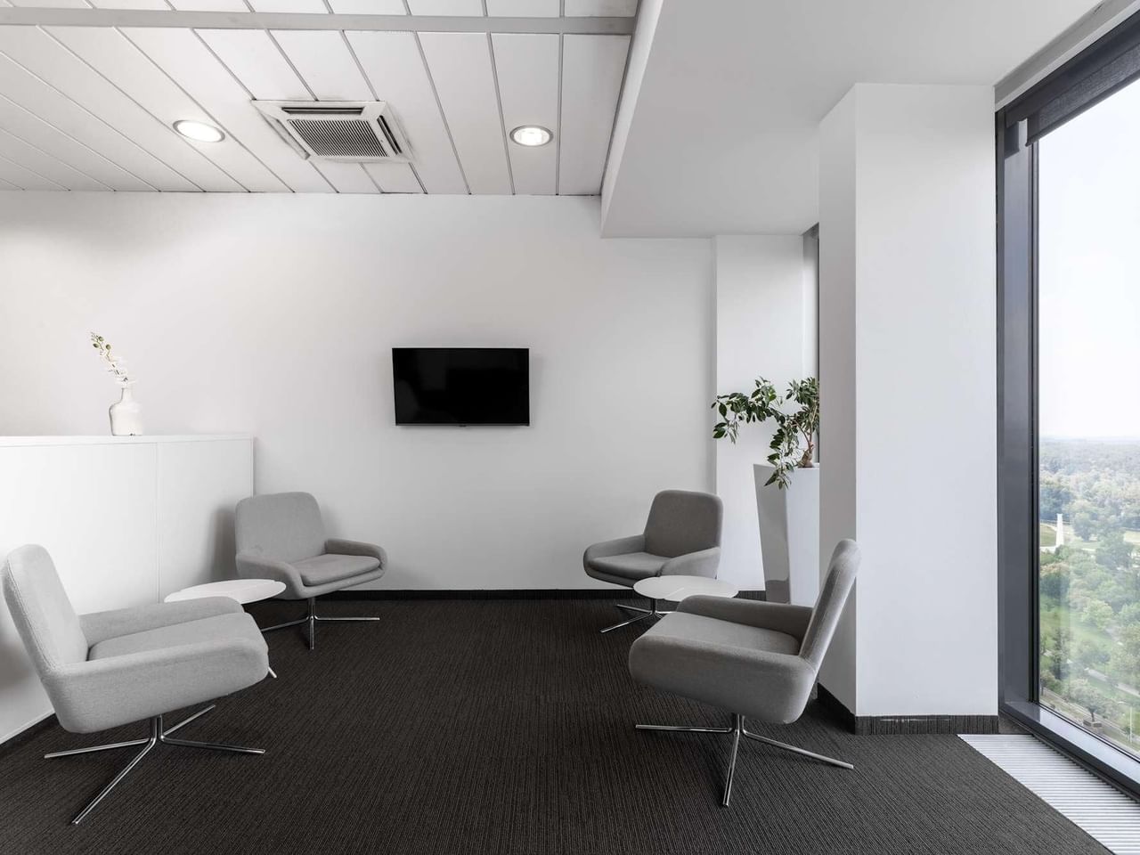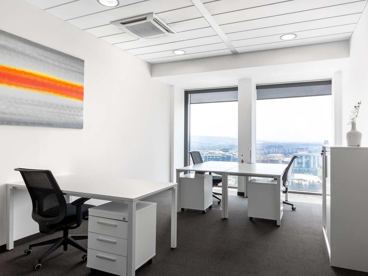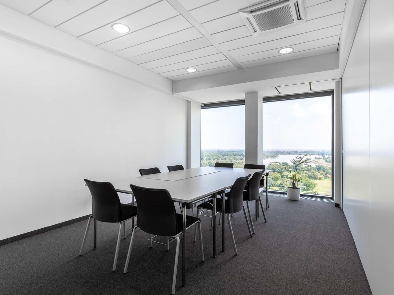 Kommen Sie hier zur Arbeit und lassen Sie sich von der atemberaubenden Aussicht auf das Stadtbild und die umliegenden Grünflächen inspirieren.