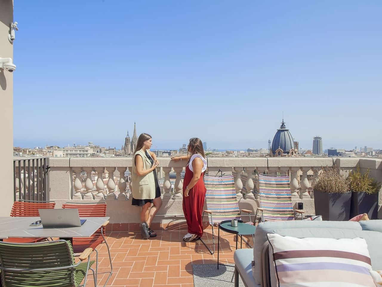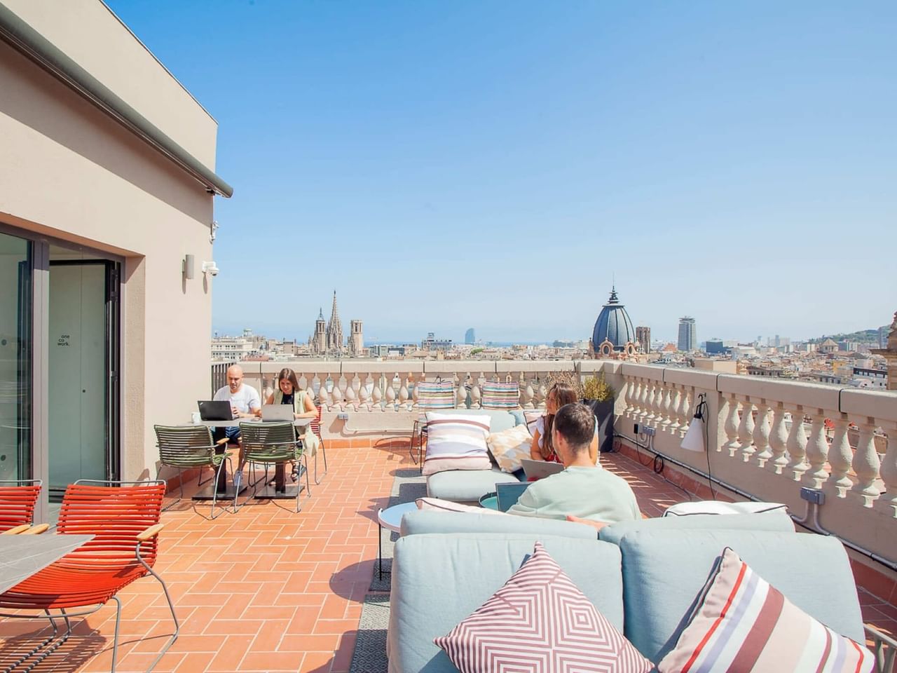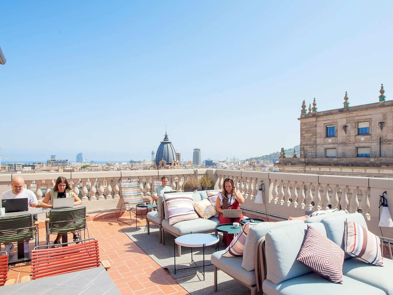 Unser neuer Null-Netto-Emissions-Coworking-Space in Barcelona ist ein wahres Schmuckstück im Stadtzentrum mit 360-Grad-Blick direkt auf die Plaza Catalunya.