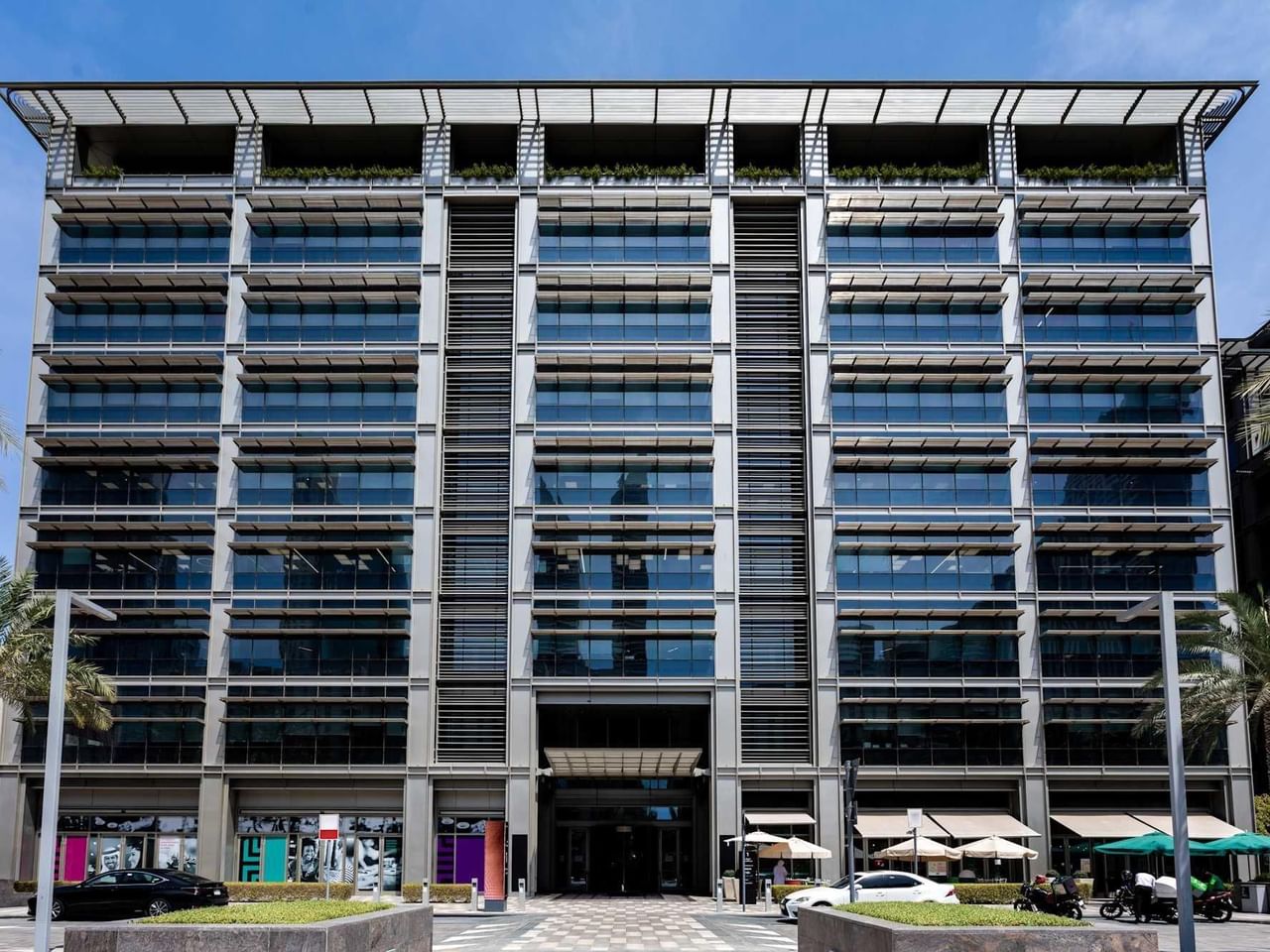 Konzentrieren Sie sich auf das Dubai World Trade Centre C1 - ein stilvolles, niedriges Gebäude, in dem lichtdurchflutete Innenräume und grüne Dachgärten die Stimmung heben und die Produktivität steigern.