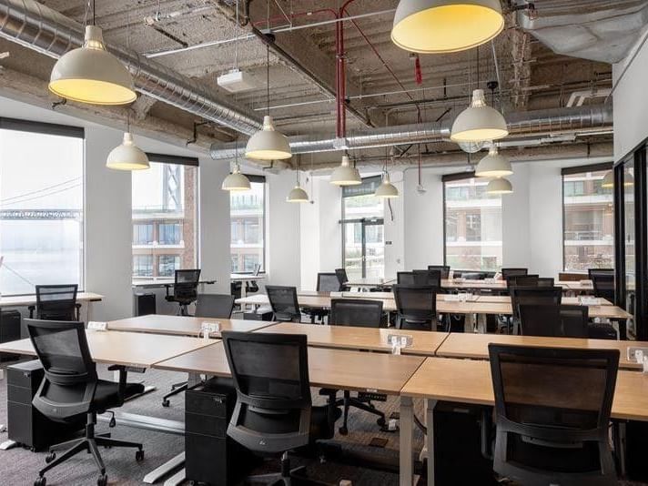 Unsere Räume bieten eine Mischung aus Coworking-Bereichen und privaten Büros, umgeben von einladenden Lounges und buchbaren Meetingräumen.